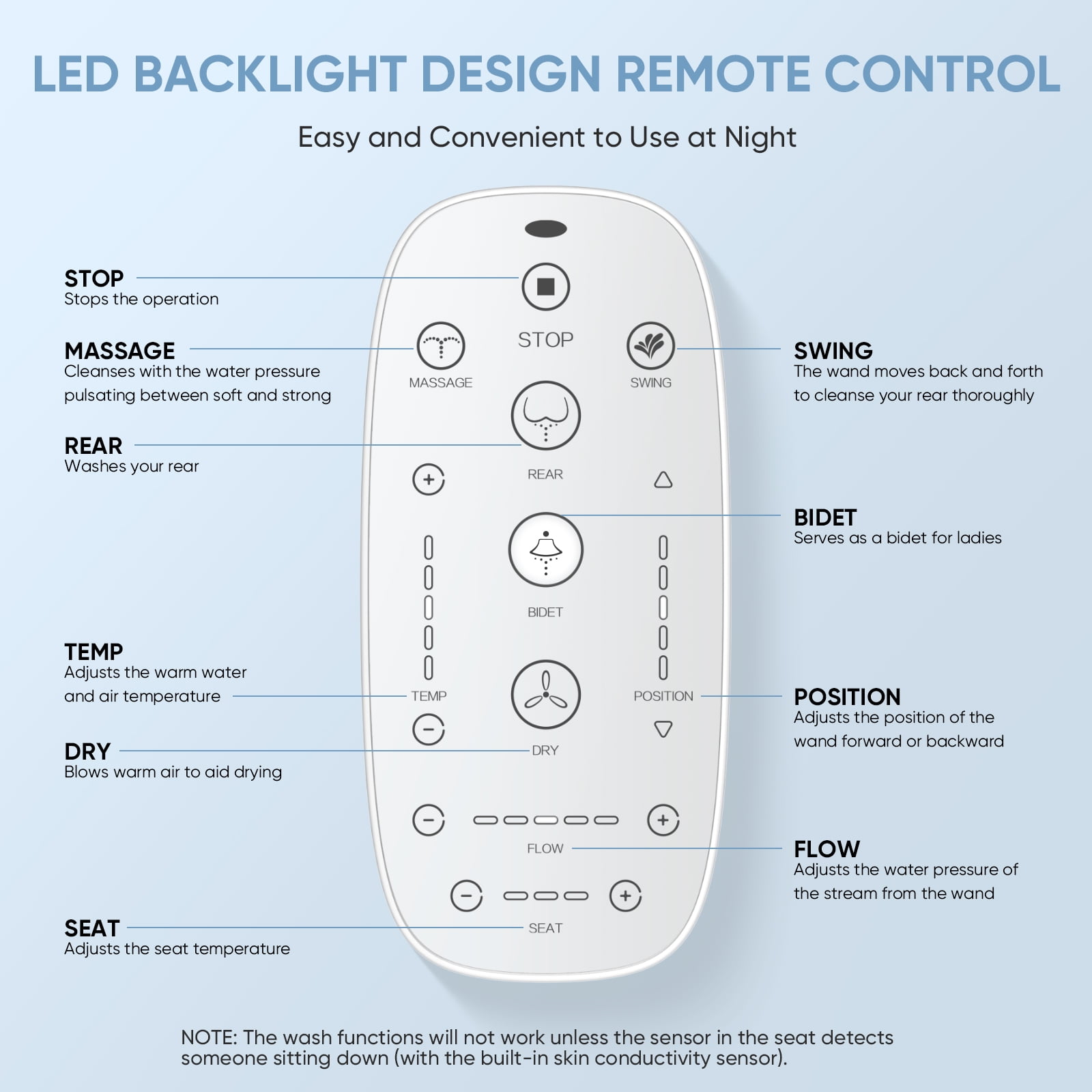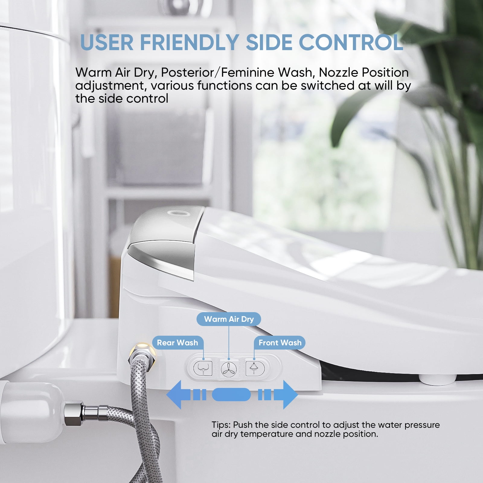 LEIVI Electric Bidet Toilet Seat with Wireless Remote and Side Panel, Multiple Spray Modes, Adjustable Heated Seat, Warm Water and Air Dryer, Auto LED Nightlight, Elongated