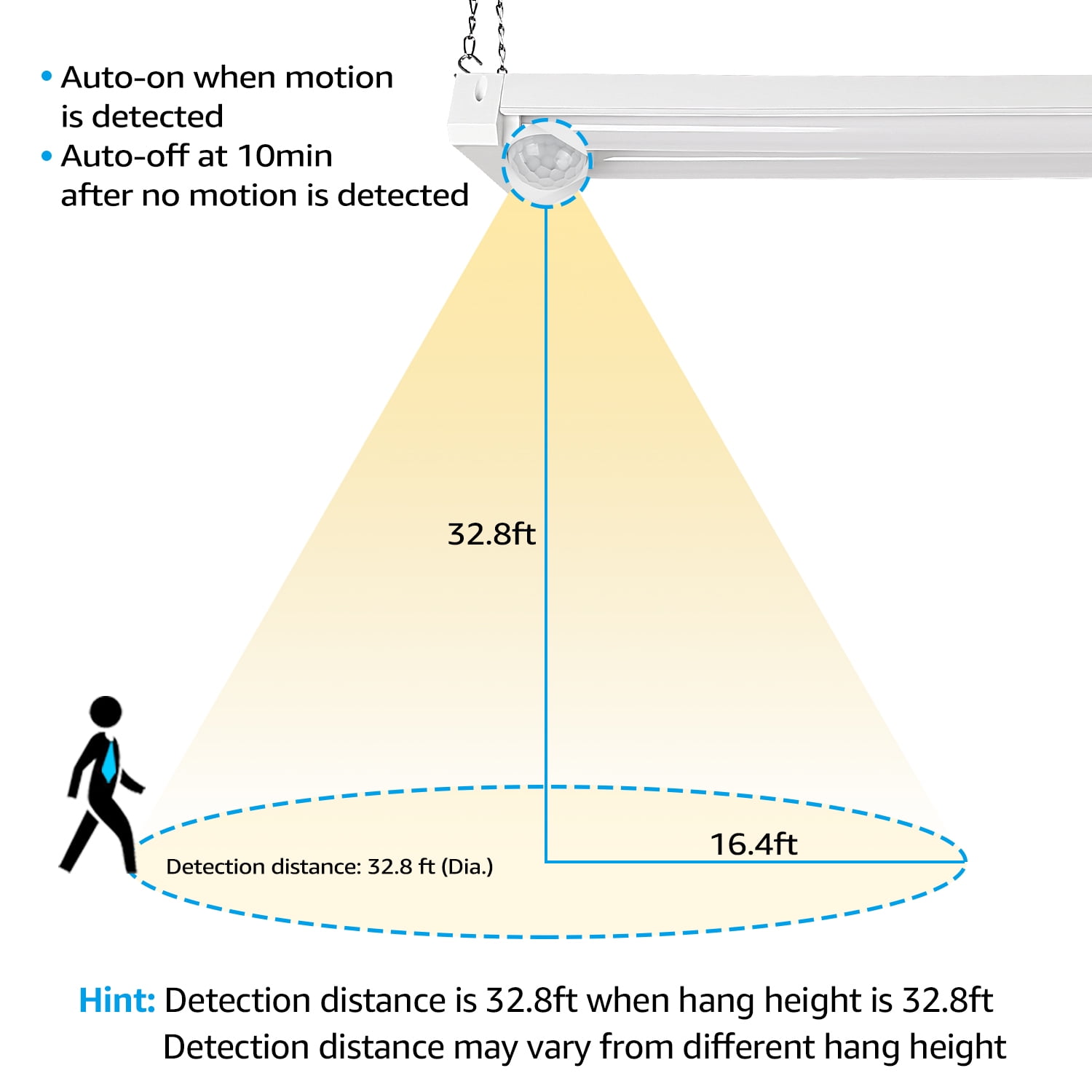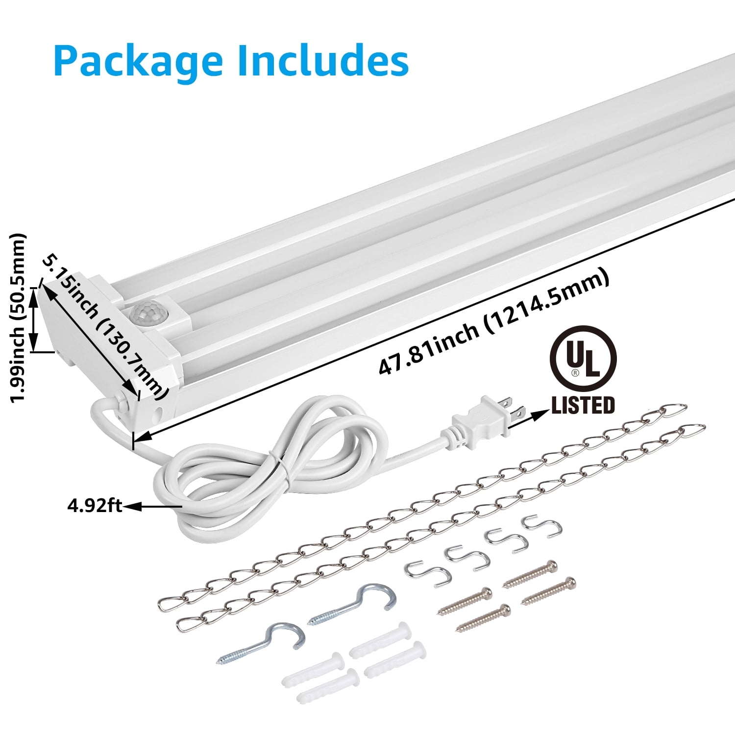 Newly designed motion sensor, no switch required 120W Equivalent Energy Star & ETL Qualified LED shop lights for garage Plug-n-play Linkable LED Shop Light