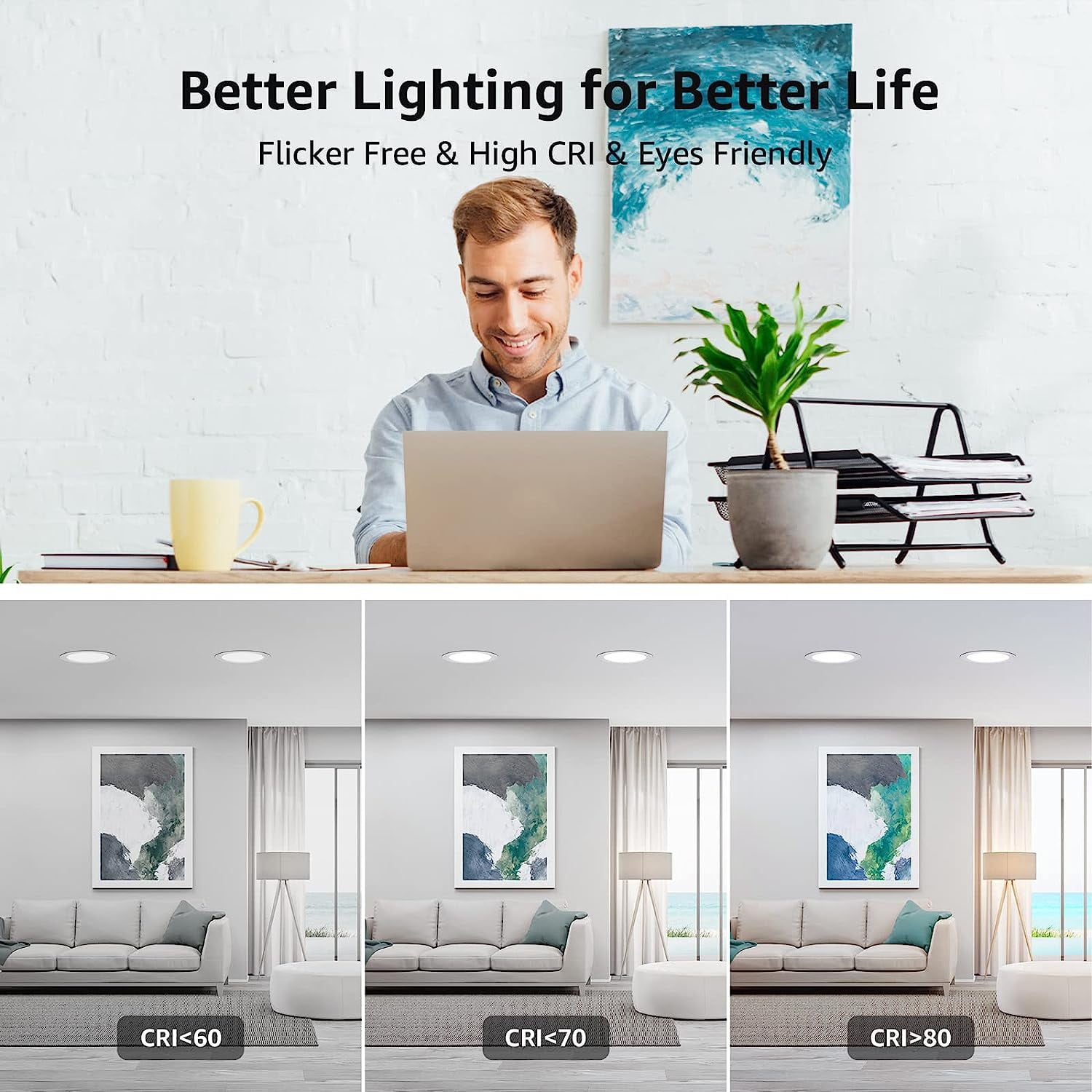 ????????【Simple Installation】Lepro 4 inch led recessed lights come with junction boxes, eliminating the need to buy additional cans. Installation is easy and can be done by cutting a hole in the ceiling using the provided 1:1 hole template, connecting the J-box to the cable, and fixing the light with spring clips. ????????【High Brightness & Energy Saving】Lepro canless led recessed light 4 inch use the updated LED chips with higher lumens and lower power. 750LM consumes 10 Watts, which equals to 80W incandescent lamp. This can save you up to 85% in energy costs while providing high brightness. ????????【Ultra-Thin】These downlights have an ultra-thin profile and require as little as 2 inches of ceiling space, making them suitable for narrow ceilings and joists. ????????【Eyes Friendly & Dimmable】No flicker and noise, these 4 inch recessed downlights are eyes friendly and compatible with most dimmer switches, allowing for smooth dimming from 10% to 100%. Suitable for damp locations, these downlights can be used in various scenarios such as hallways, kitchens, bedrooms, living rooms, dining rooms, meeting rooms, offices, basements, and more. ????????【50,000 Hours Lifespan】Lepro canless LED recessed light last up to 50,000 hours, which is equivalent to 45 years of use if you operate them for 3 hours per day. This can save you the effort and cost of frequent bulb replacements. ????????【Highest Safety Standards】Lepro led wafer lights are certified by ETL, Energy Star, and FCC safety standards, ensuring the highest level of safety and quality. Upgrade your lighting with confidence and peace of mind. “We have everything you need for lighting.”