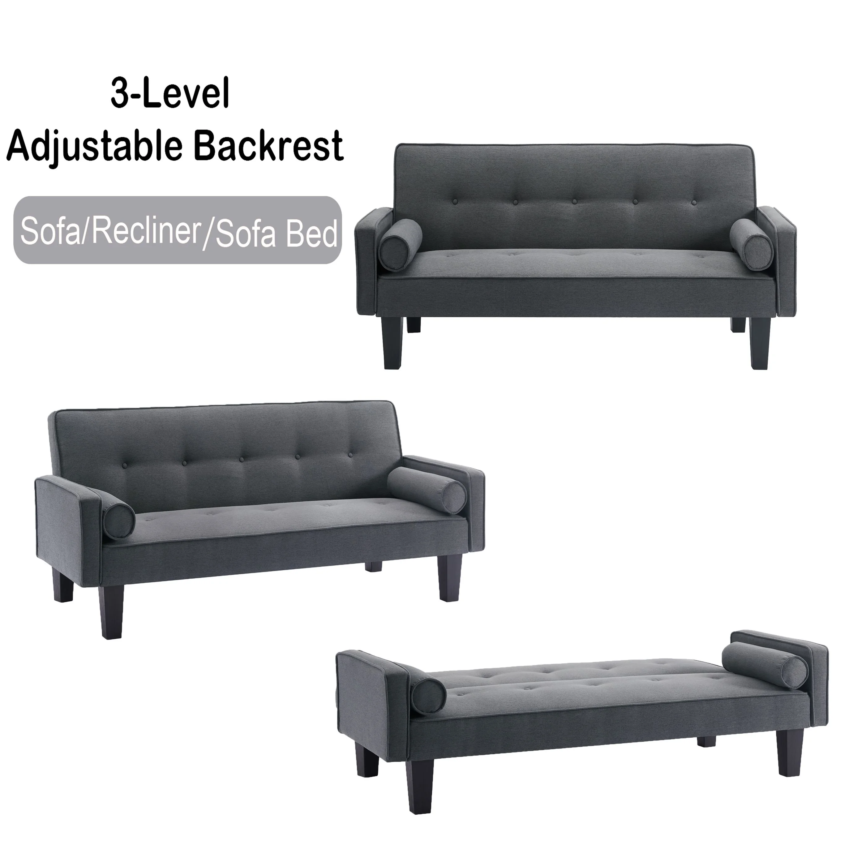 Leumius 72″ Convertible Loveseat Sofa Bed Sleeper Daybed,Modern Upholstered Folding Recliner,Small Futon Sofa for Living Room Apartment Office,Dark Gray