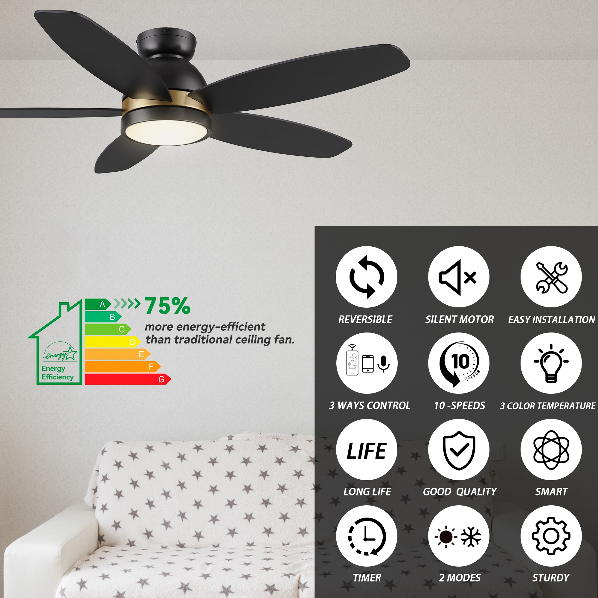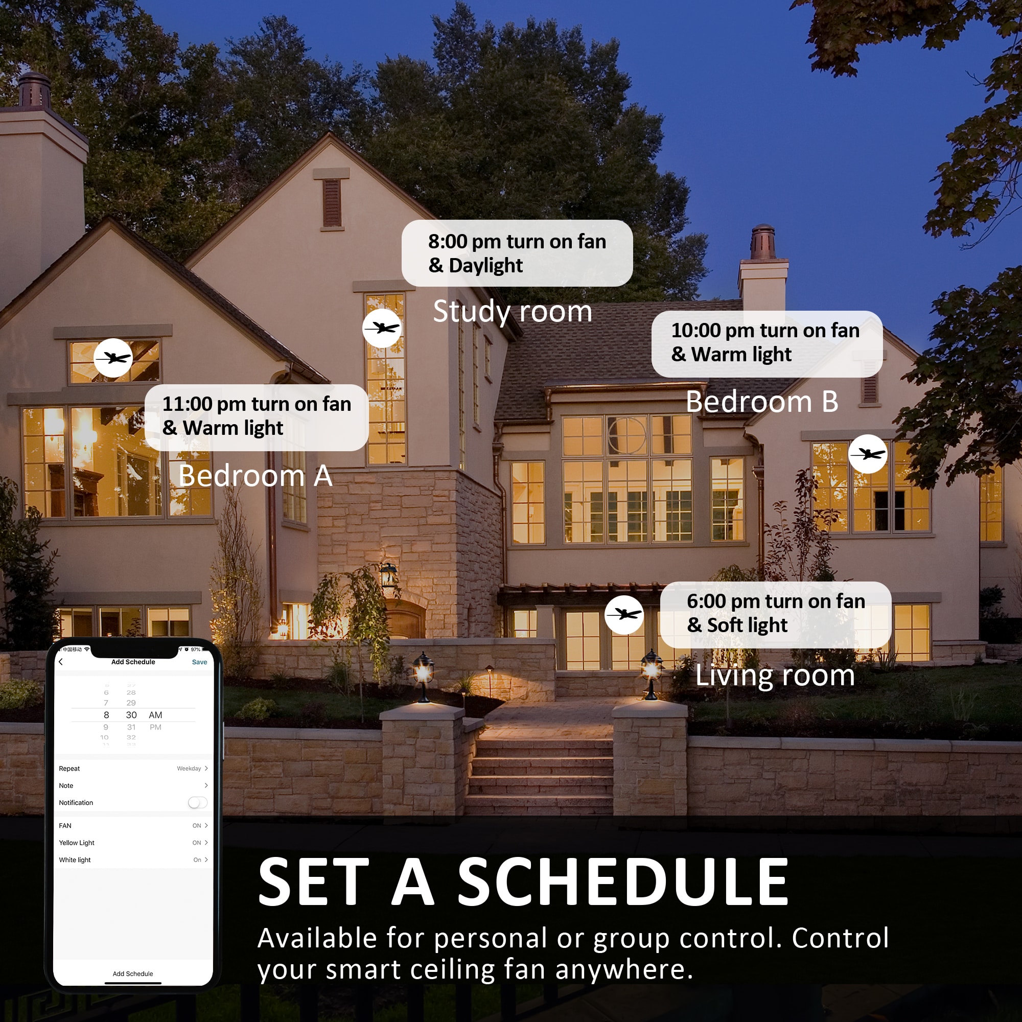 The Levi 48-in smart ceiling fan offers a combination of cooling, illumination, and aesthetics, making it an ideal choice for spacious indoor living areas. With its sleek design and Black finish, this Wifi-enabled smart ceiling fan showcases a blend of simplicity and elegance. It incorporates elegant Plywood blades and has an Integrated 4000K LED cool light, enhancing both functionality and style. The fan provides convenient features such as a Remote control, Wi-Fi apps, Siri Shortcut compatibility, and Voice control technology, making it compatible with Amazon Alexa and Google Home Assistant for effortless fan customization.