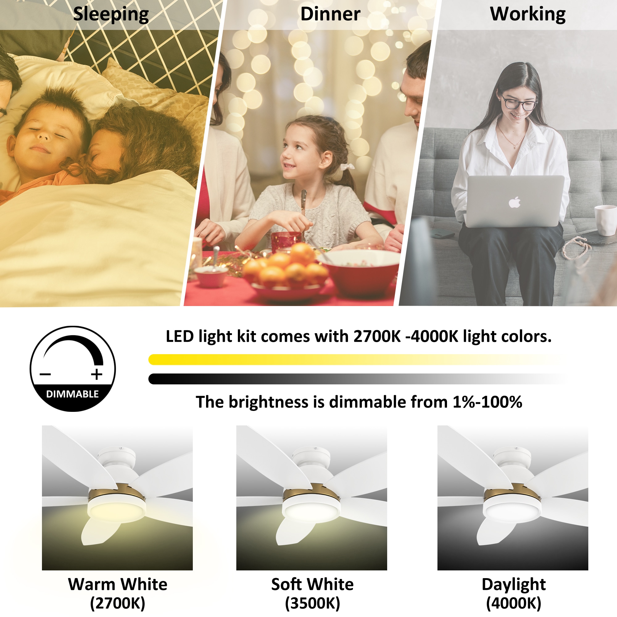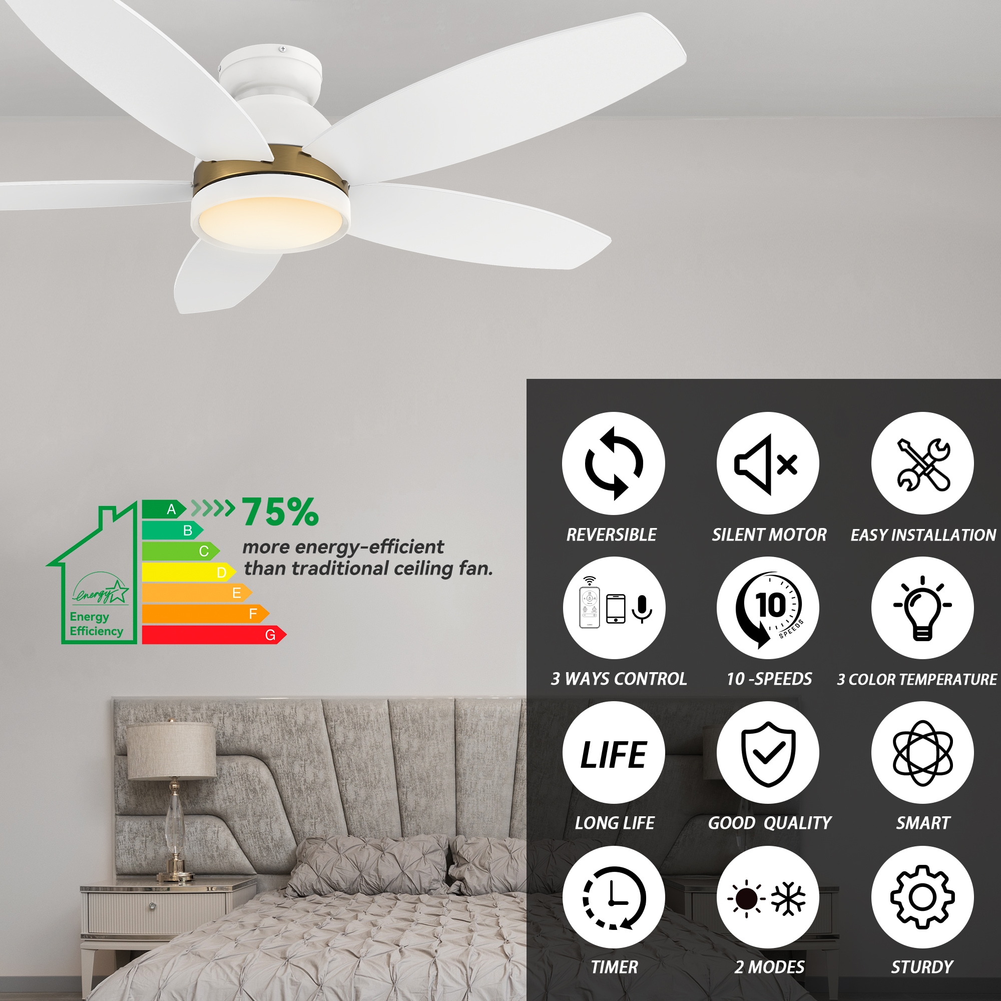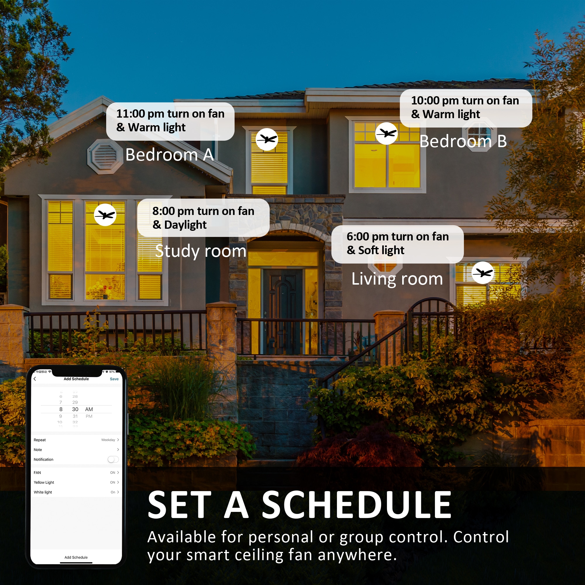 The Levi 48-in smart ceiling fan offers a combination of cooling, illumination, and aesthetics, making it an ideal choice for spacious indoor living areas. With its sleek design and White finish, this Wifi-enabled smart ceiling fan showcases a blend of simplicity and elegance. It incorporates elegant Plywood blades and has an Integrated 4000K LED cool light, enhancing both functionality and style. The fan provides convenient features such as a Remote control, Wi-Fi apps, Siri Shortcut compatibility, and Voice control technology, making it compatible with Amazon Alexa and Google Home Assistant for effortless fan customization.