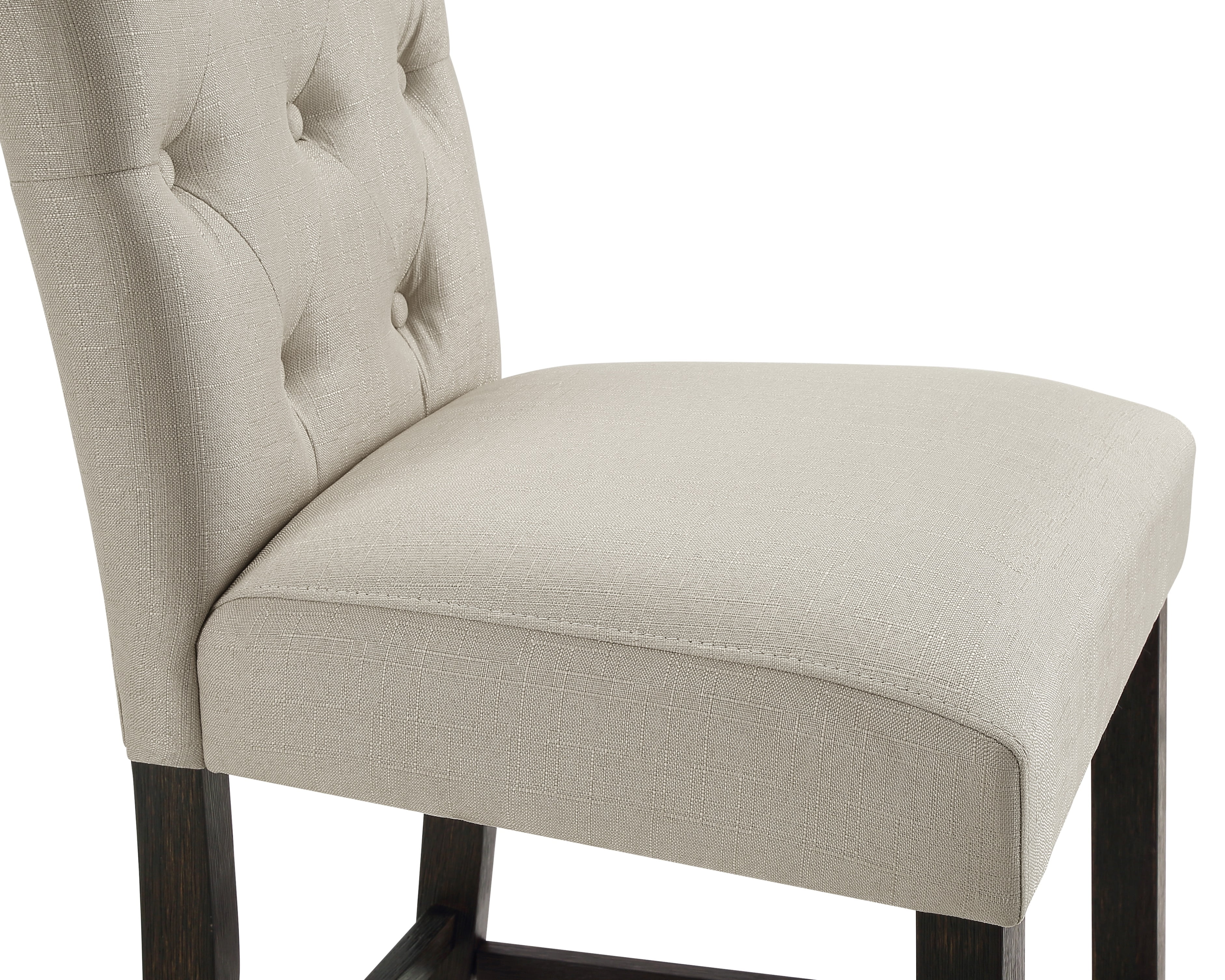 This set includes two counter height dining chairs The seats and backs are padded and button tufted. The durable wooden legs are finished in rich espresso to match the style These high-back chairs are slightly and elegantly curved, expertly finished with soft upholstery Dimensions: 19″ W x 23″ D x 40.25″H; Seat width: 19″; Seat Height 25″; Seat Depth: 16.5″ Some assembly required. Photo may be slightly different from the actual item in terms of color due to the monitor’s display