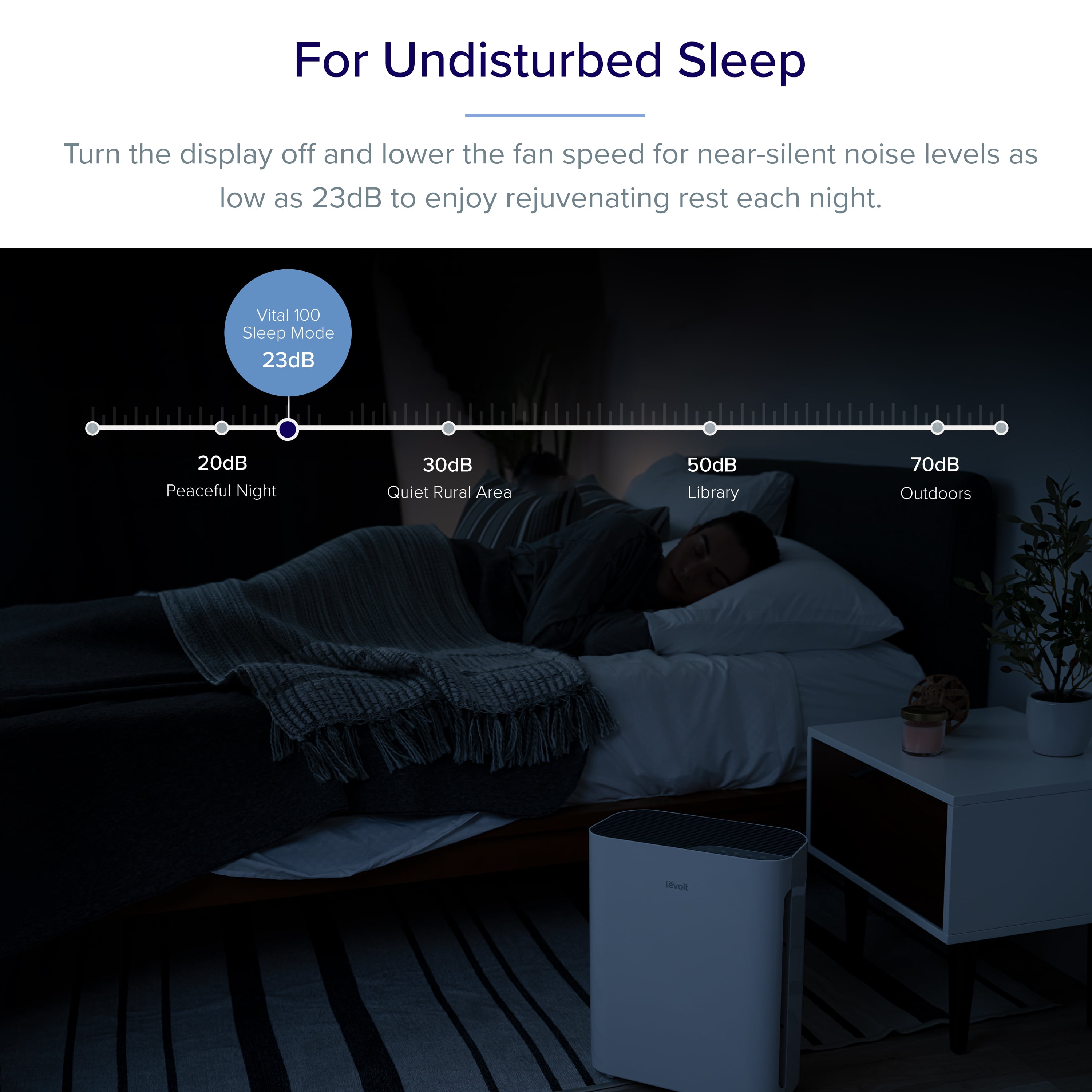 Levoit Air Purifier Vital 100 Plus, Compact True HEPA Air Cleaner with ARC Filter for Allergies and Asthma, Odors, Dust, with Washable Filter, (Exclusive Bonus Filter) Besides the 3-stage filtration to ensure top-notch air purification, the Vital 100 Plus typically provides: � An environment-friend and economical solution for large particles and longer use of your filters. � ARC Technology for odors Washable Pre-filter! Wash your pre-filter once a month to continue trapping larger particles like lint and pet fur and protect the HEPA filter. The ARC Formula (Air ReComposition) improves deodorant ability by 60%. It chemically decomposes harmful substances trapped within the Activated Carbon Filter. This helps neutralize household odors and pet smells as well as prevents second-hand pollution. Exclusive $31.99 Bonus 3-Stage Filter Included in the box with every purchase! Protect Your Investment: Use the genuine Levoit replacement filter to ensure what you’re buying is worthy of your investment Original Replacement Filter Vital 100-RF, Genuine, 1 Pack Click me Original Replacement Filter Vital 100-RF, Genuine,�2 Pack�Click me Turn your home into a haven of fresh air TODAY, starting with the Levoit Air Purifier.