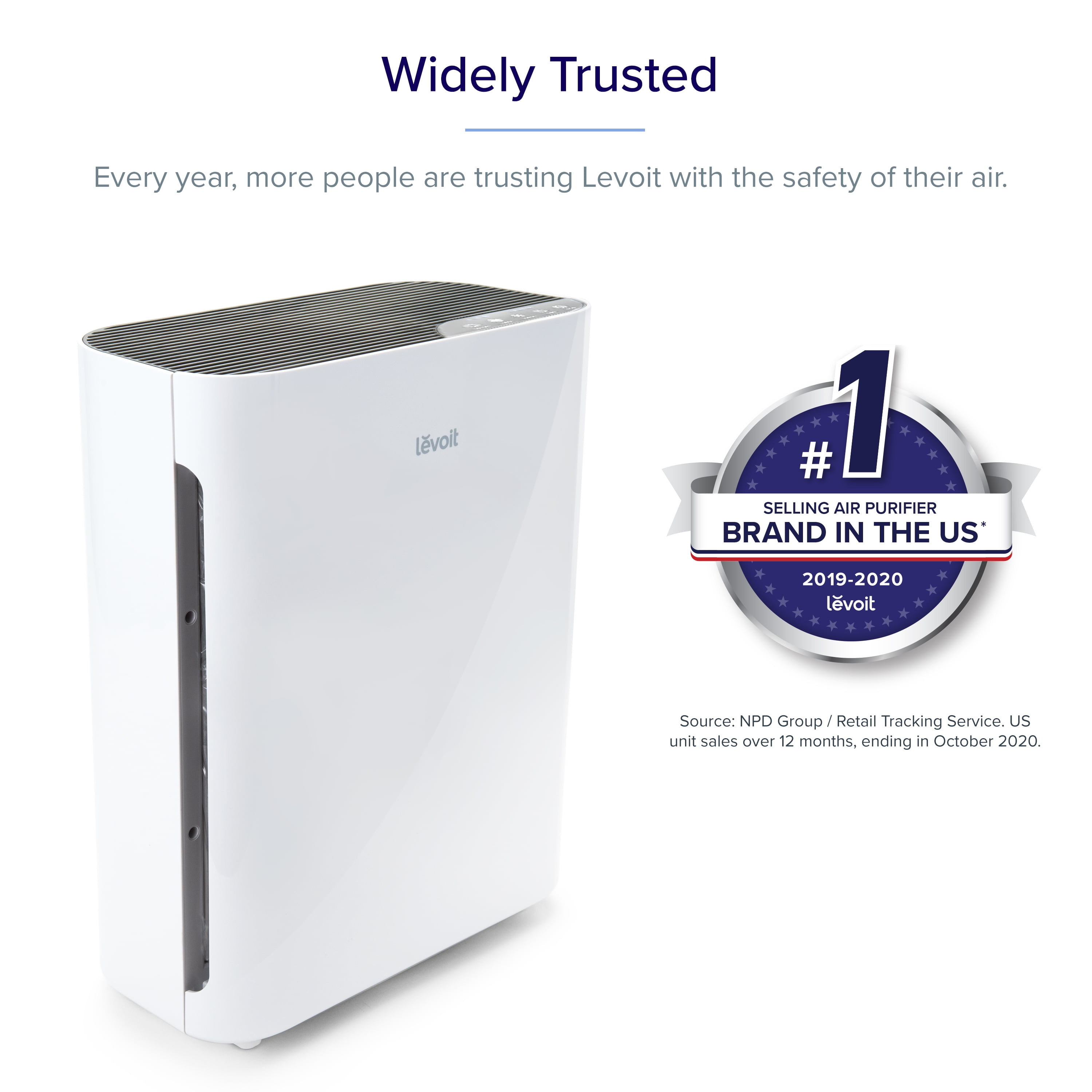 Ideal Room Size: 300 sq ft to 488 sq ft. (CADR: 130 CFM / 221 m�/h). 3 Stage Filtration System: Washable Pre-filter, ARC Formula Carbon Filter & True HEPA Filter. Reduction of Certain Bacterias and Viruses: Staphylococcus aureus, H1N1, Aspergillus, Escherichia coli, Aspergillus. Ultra-Quiet Operation: 23dB.Exclusive $31.99 Bonus 3-Stage Filter Included in the box with every purchase! Exclusive $31.99 Bonus 3-Stage Filter Included in the box with every purchase! The compact design lets you place the Vital 100 near walls. Product Dimensions (L x W x H): 6.40 x 12.80 x 16.10 Inches. Pre-Filter: Dust, lint, fibers, and pet fur. H13 True HEPA Filter: Bacteria, mold, pollen, pet dander. Activated Carbon Filter: Smoke, fumes, VOCs, pet odors, cooking smells. Timer for 2, 4, or 8 hours. Check Filter Indicator. Complies with the California air resources board (CARB) for indoor cleaning devices. Also, FCC certified, ETL listed. #1 selling air purifier brand in the US 2019-2022. *Source: The NPD Group/Retail Tracking Service, US unit sales, 12 months ending October 2020 According to AMZ sales. Hassle-Free 2-Year Warranty and Friendly Customer Support Team-Based in California. Our Commitment to Fresh Air: Since 2019, Levoit has planted 2,000 trees through our partnership with Weforest. Trusted by 3M+ Customers: Levoit brings fresh air to over 3 million customers worldwide. Star Product: �Core 300-RAC. Small Room: Core Mini. Best Value of Smart Air Purifier: Core 200S. Best Advanced Model For Large Room: Plasma Pro 400S.