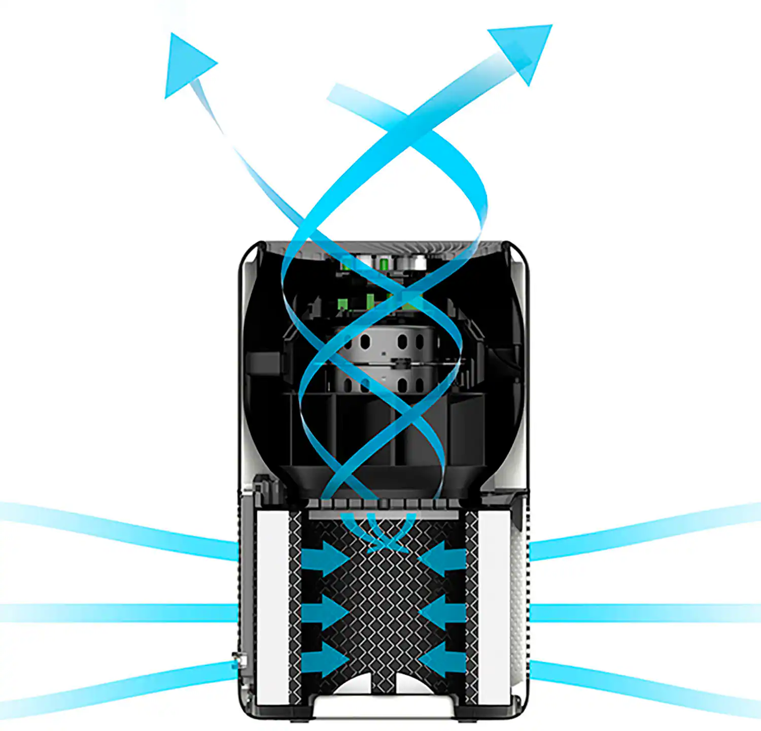 The convenient Check Filter Indicator reminds you when it might be time for a new filter. Keep airborne contaminants out of your home with the Core 300 Air Purifier. The Pre-Filter captures large particles like lint and hair. The Main Filter captures at least 99.97% of airborne particles down to 0.3-microns in size. The High-Efficiency Activated Carbon Filter with ARC Formula adsorbs odors and VOCs. The air purifier uses VortexAir Technology’s spiral 360° airflow to quickly refresh air in a medium-sized room such as a kitchen or living room.