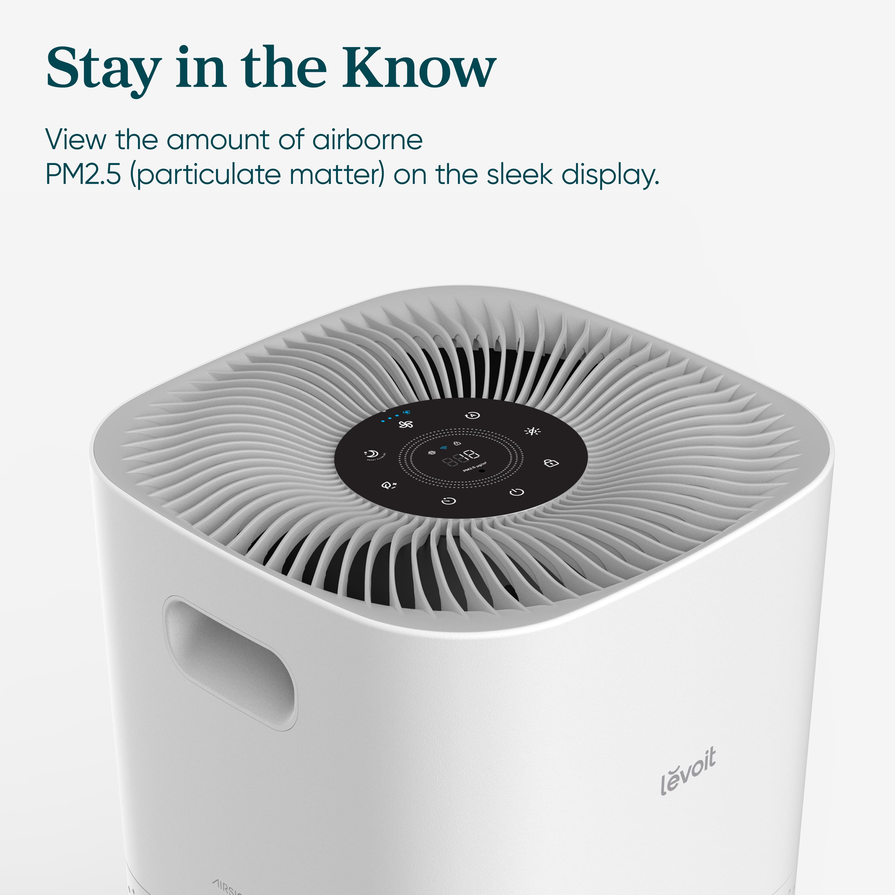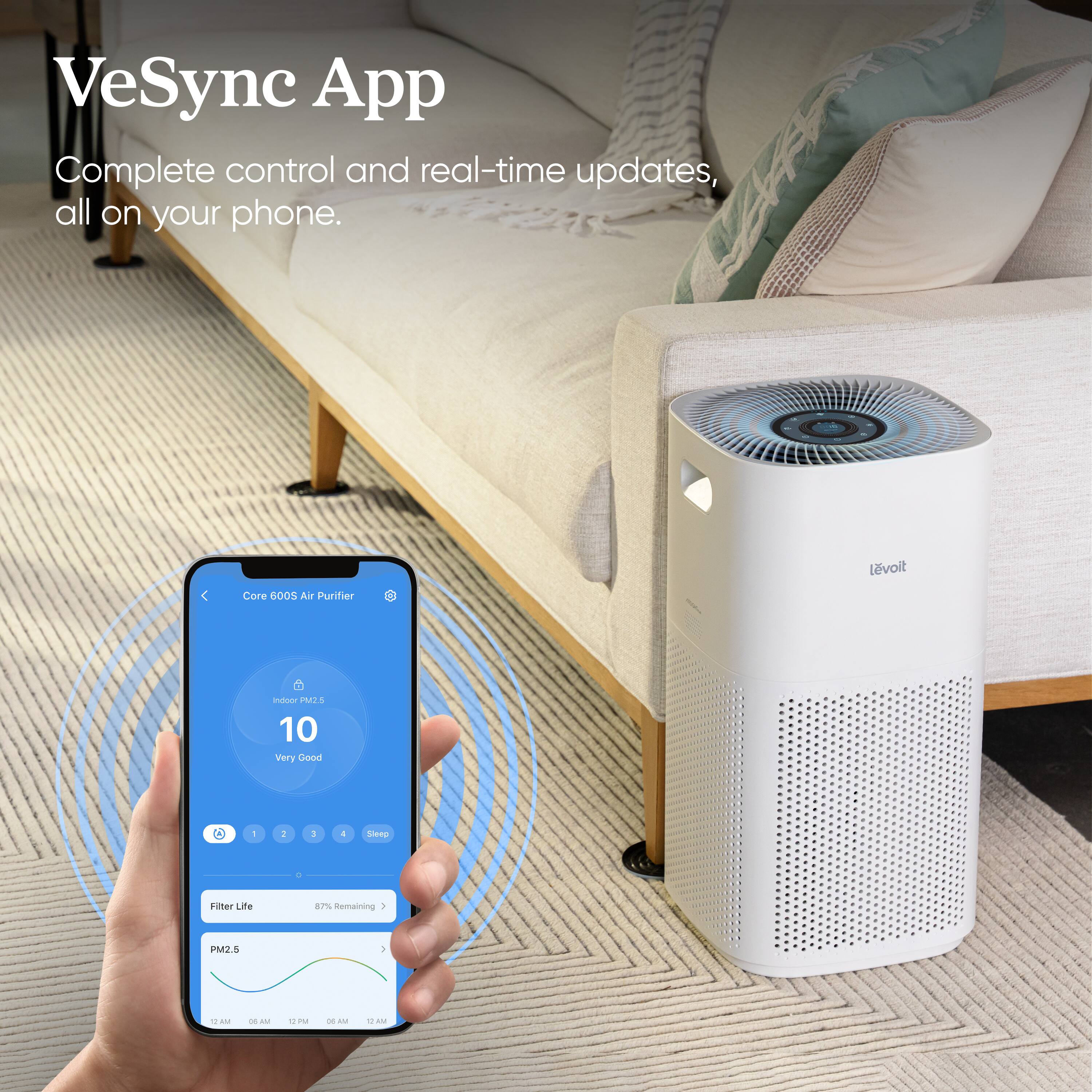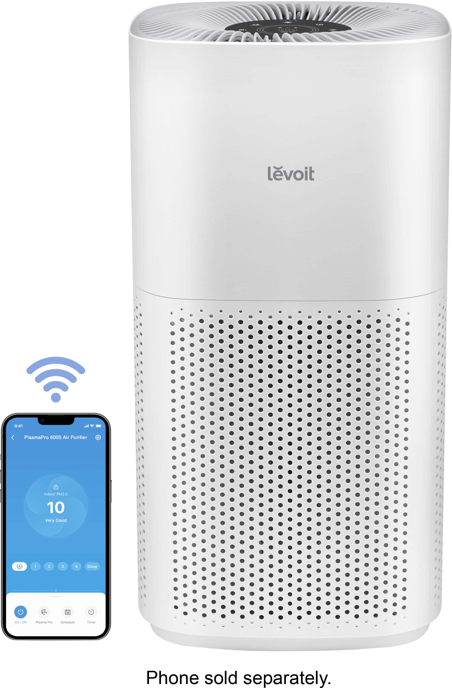 Completely refresh your space with the Levoit PlasmaPro 600S Smart Air Purifier. The air purifier quickly refreshes large areas, like an apartment or loft, with its aerodynamic air duct design and spiral 360 airflow. The 3-stage filtration system includes a Pre-Filter, Main Filter, and Custom High-Efficiency Activated Carbon Filter. Together, they capture at least 99.97% of airborne particles down to 0.3 microns and help neutralize smoke, fumes, VOCs, and household odors. Use the VeSync app to create schedules, connect to voice assistants, check filter life, control settings, receive real-time air quality updates, and more.