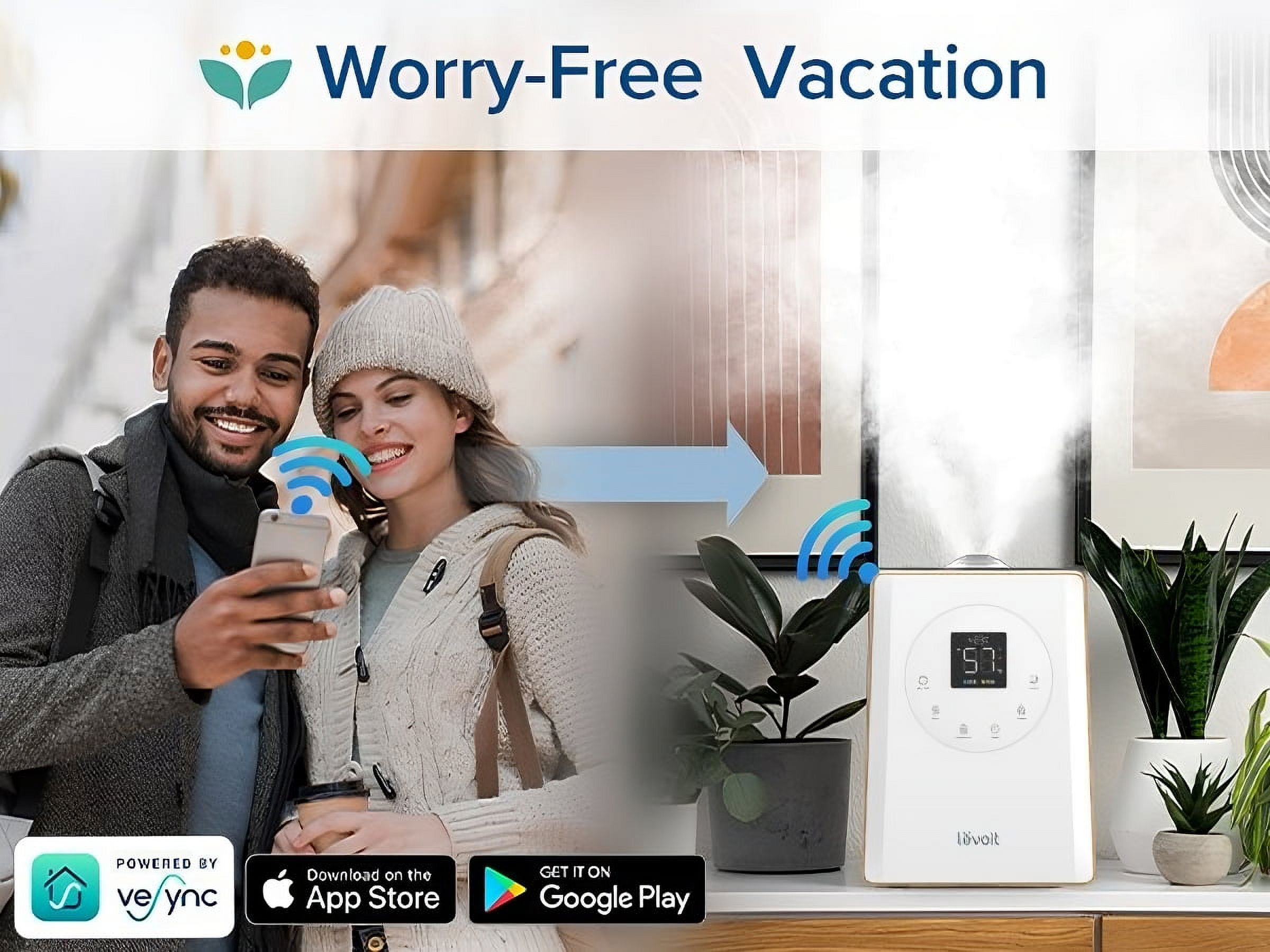 Levoit Smart Warm and Cool Mist Humidifier for Room ,6L Top Fill Air Vaporizer with Aromatherapy Bouns Remote Control,LV600s, Wood With the convenient APP and voice control, the LV600S is undoubtedly your most personal humidifier for home. Already in bed and don’t want to get up.Don’t worry!Use the free VeSync APP to turn on/off ,control settings, create schedules for the whoel house humidifier even if you are not at home, and connect to a third-party smart voice assistant to free your hands.The extra remote control gives you more convenience. The top-fill design makes it easier to refill and clean. You can add water in one step by simply opening the lid . Running at just 28dB for a near-silent noise level and sleep mode with all lights off will create a lightless environment for light sleepers, kids and babies. Equipped with 6L tank lasts up to 60 hours, and can easily handle spaces as large as 753 ft² / 70 m².Three levels of humidity adjustment provide the most suitable humidity for plant ,furniture and pets. With the patent warm & cool mist techology,the wirecutter recommended humidifier offers 4x faster humidification than others.The humidifier can increase humidity by 10% in 20 mins help to relieve nasal congestion, cough, and skin itching due to dry air quickly. Stay comfortable all year round with warm and cool mist settings. The warm mist helps combat congestion and soothe sore throats in winter, while the cool mist helps moisturize your skin in the summer.The warm mist temperature is between 86°F-120°F, so there is no risk of burns. WHAT IS THE DIFFERENCE BETWEEN LV600S AND LV600HH? The Smart humidifier LV600S introduces an all-new top-fill design, along with smart controls through the VeSync app, Amazon Alexa, and Google Assistant. WHAT IS THE DIFFERENCE BETWEEN LV600S AND LV600HH? The Smart humidifier LV600S introduces an all-new top-fill design, along with smart controls through the VeSync app, Amazon Alexa, and Google Assistant. We are the customer reports recommend brand that give you 2-year warranty & satisfaction guarantee. Bouns: 1 remote control is included in the box with every purchase!