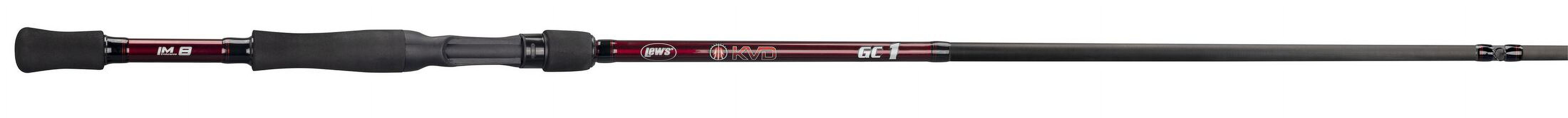 The KVD rod series feature premium IM8 graphite blanks, split-grip EVA handles, brand new Lew’s proprietary Full Contact reel seats with increased blank contact, rear locking reel seat on spinning models for improved comfort, stainless steel guides with aluminum oxide inserts with strengthened stainless steel with zirconia insert tip top for optimal durability for use with braided lines and a patented “No Foul” hook keeper. Rods are constructed on a raw graphite blank with the rich midnight fire red finish through the handle and black guide wraps, matching the famous KVD color scheme. “I designed my new Lew’s KVD series with meticulous detail to the exact specific actions, rod and handle lengths, features, and quality components that I demand for competition level equipment. At this price you will be amazed when you put one in your hands.”
