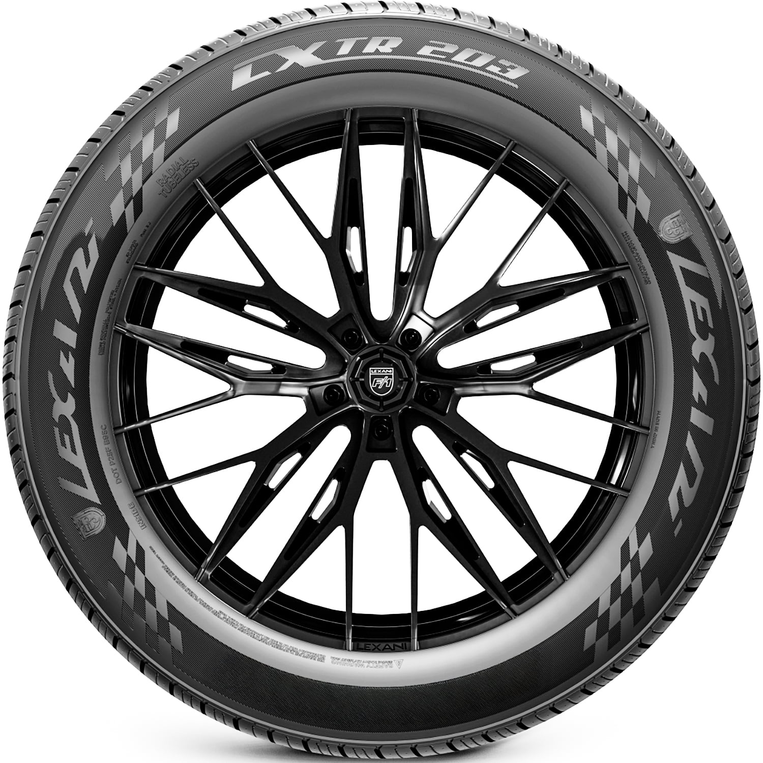 The Lexani LXTR-203 is a radial all-season tire specially designed for drivers who are looking for year-round traction, comfort, and tremendous value. Because this tire comes at an economical price, you get the best value for your money. It doesnt compromise on performance so you can be assured that these tires wont give out easily like most budget tires. The radial element of the Lexani LXTR-203 allows it to perform well on both wet and dry conditions. It drains water efficiently out of the tires and improves handling on dry roads. It features a solid center rub which enhances its stability and handling. Its symmetric tread pattern allows multiple tire rotation patterns so you can install it either way you prefer. This versatile tile is not only long-lasting but it is also quiet which means you and your passengers can enjoy riding in peace even when youre going at long distances.
