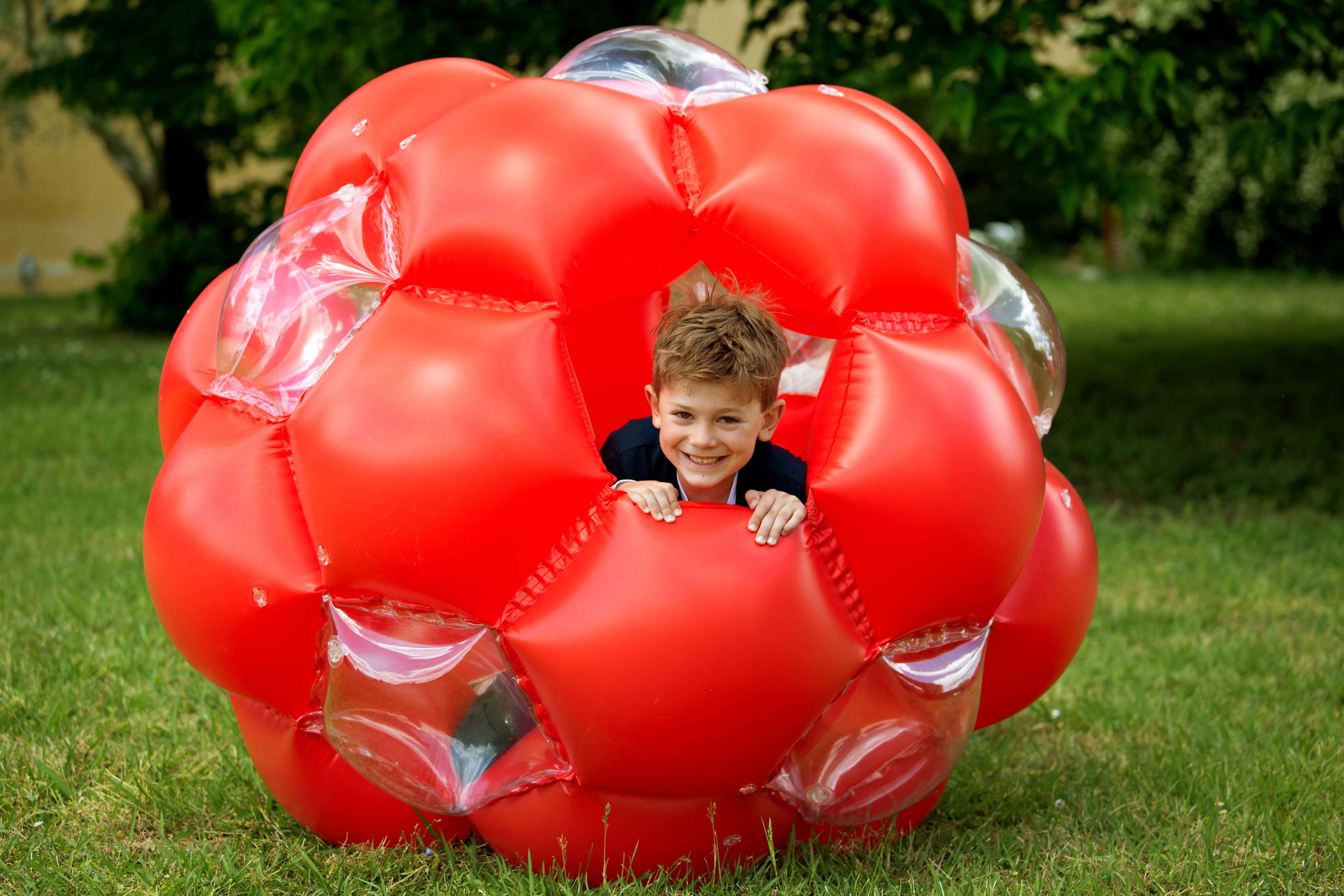 Heavy-duty, safe plastic for safer play. Giant ball for all the family! For hours of fun and outdoor playing time! Transparent ball to improve visibility. 1 entry and 1 exit for greater security. Giant ball of 51” diameter (1,30 meters) that can support a weight going up to 150 pounds / 68kg