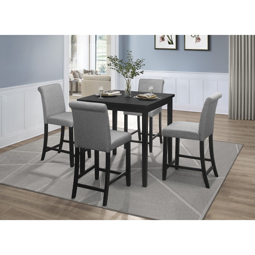 The Adina Collection’s transitional style makes it a perfect fit for your casual dining space. A black finish is utilized over the ash veneer of the counter height leg table. Designed to comfortably seat four, it adds a modern touch to any dining space. Assembly required. Features: Materials: Wood, wood veneer, MDF board Finish: Black Counter height design Specifications: Product Dimensions: 35.5″H x 35.5″W x 35.5″D Product Weight: 44.25 lbs Product Dimensions: (Apron to Floor) 31.5″ Product Dimensions: (Distance Between Legs) 30.5″