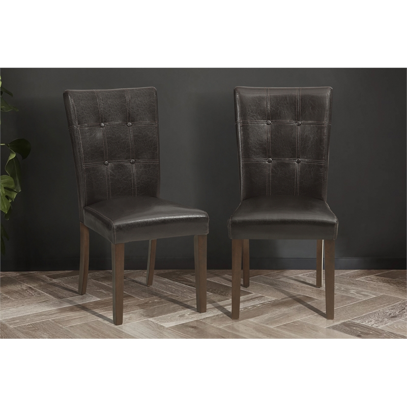 The casual Decatur Collection is the transitional style that you have been searching for in your dining space. Basswood veneer covers the legs, with an espresso finish, that support the classic profile of the chair seat, which is covered in dark brown bi-cast vinyl, with tufted accenting. Features: Wood frame Espresso finish Faux leather upholstery Button-tufted chair back Specifications: Upholstery Material: Wood Product Dimensions: 38.5″ H x 19″ W x 25″ D Seat Height: 38.5 Target Audience: Adult (18 Years and Up) Assembly details: Adult Assembly Required, Tools Not Provided Maximum Seating Capacity: 1 Seat back height: 19 Furniture Subtype: Armless Chairs Seat Dimensions: 19″ H x 19″ W x 17.5″ D Product Weight: 27.5 lbs Weight Capacity: 250 lbs