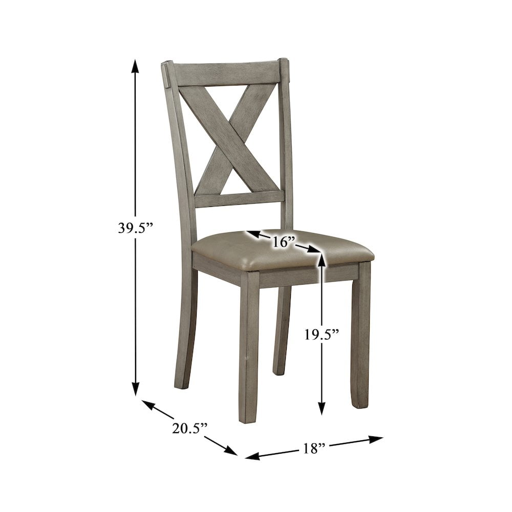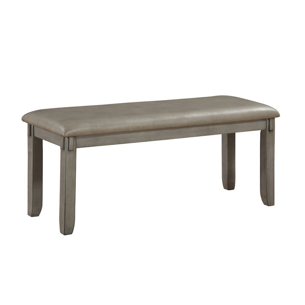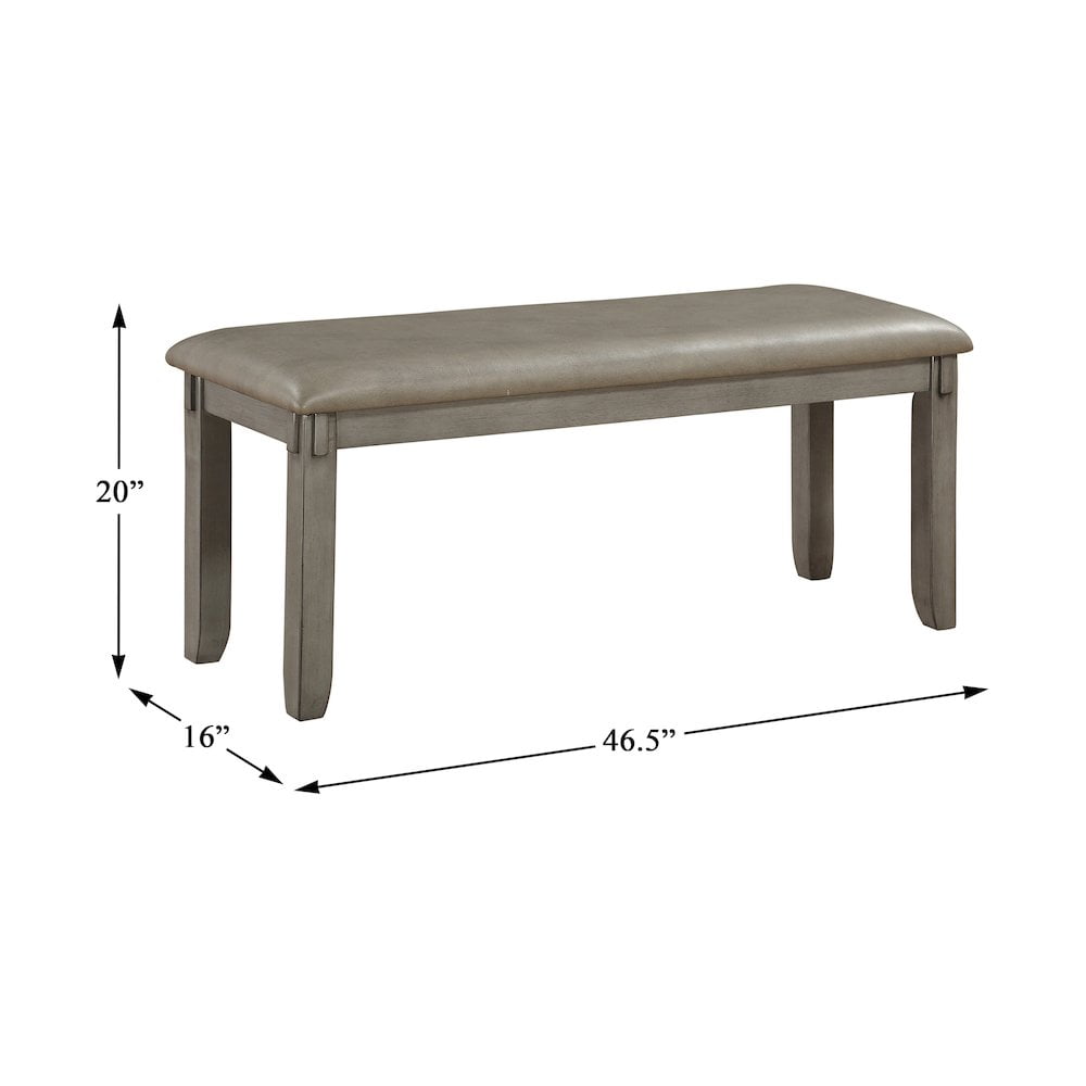 Designed in the transitional style for your casual dining space, the Holders Collection will be a welcome space for your friends and family to gather during meals and social activities. The convenient 6-piece packaging of the collection includes a table, four chairs and a bench. X-back, wood frame chairs perfectly complement the understated design of the table. Light, neutral tone seats create complementing contrast to the gray finish of the collection. Features: Includes dining room table, 4 chairs and bench Made of okume veneer, wood and engineered wood Gray finish Faux leather upholstery Seats 6 Assembly required Specifications: Product Dimensions: 30.50″ H x 60.00″ W x 36.00″ D Table Dimensions: 60x36x30.5 Chair Dimensions: 18×20.5×39.5 Bench Dimensions: 46.25x16x19.75 Product Dimensions: (Apron to floor) 26.25″ Leg Dimensions: (Distance between legs short side) 29.75″ Leg Dimensions: (Distance between legs long side) 54″ Seat Width: 17.5″ Seat Depth: 16.5″ Seat Height: 19.5″ Product Weight: 152.75 lbs