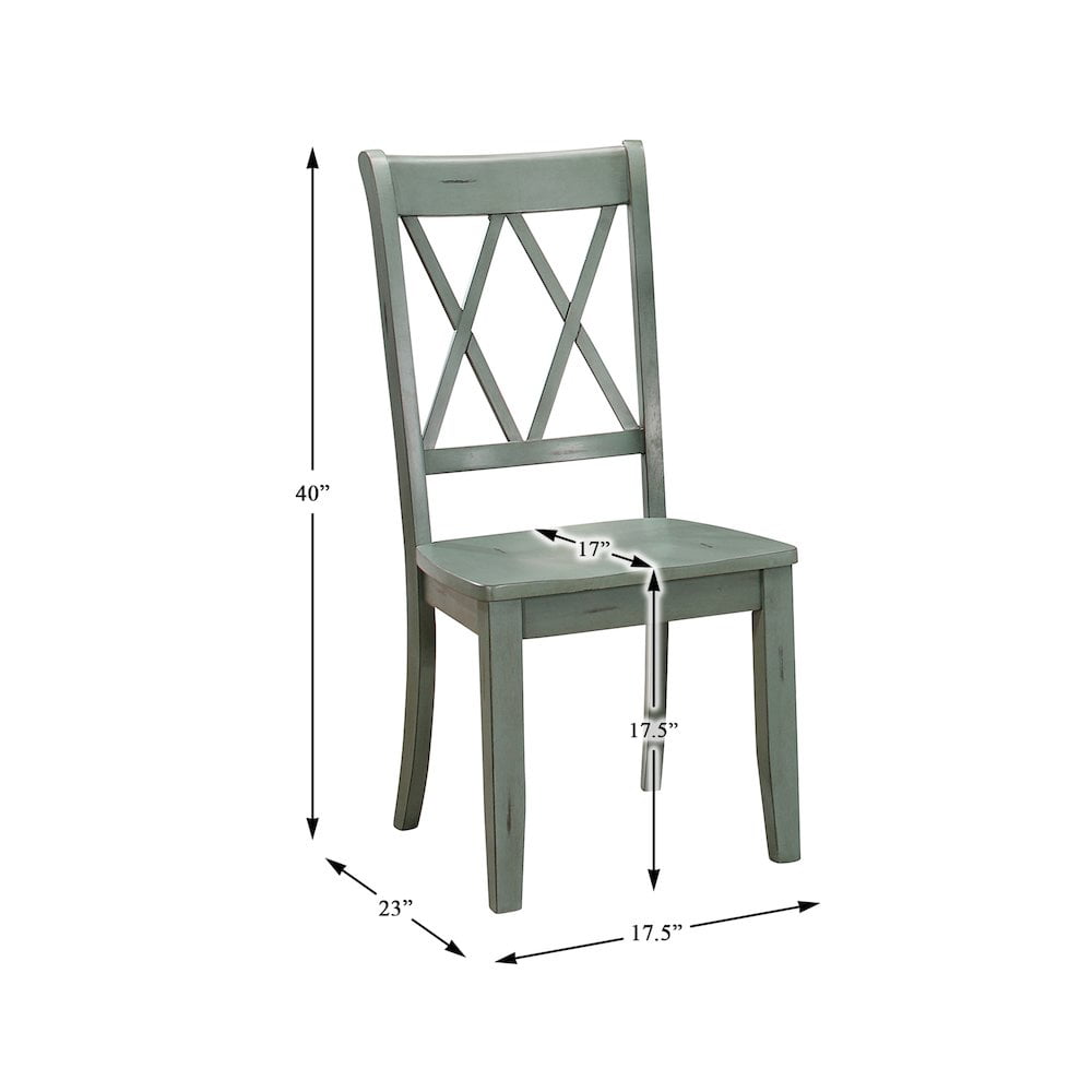 At home in a casual country setting, the Janina Collection allows for a customizable look to match the décor of your dining space. The teal finish of the side chair’s pine veneer complements its transitional double-x back design and allows for unique accent to your dining room. Features: Wood frame Teal finish Frame Construction/Joinery: Corner Block Specifications: Product Dimensions: 40″ H x 17.5″ W x 23″ D Seat Dimensions: 17.5″ H x 18.5″ W x 17.25″ D Product Weight: 35.25 lbs Weight Capacity: 250 lbs