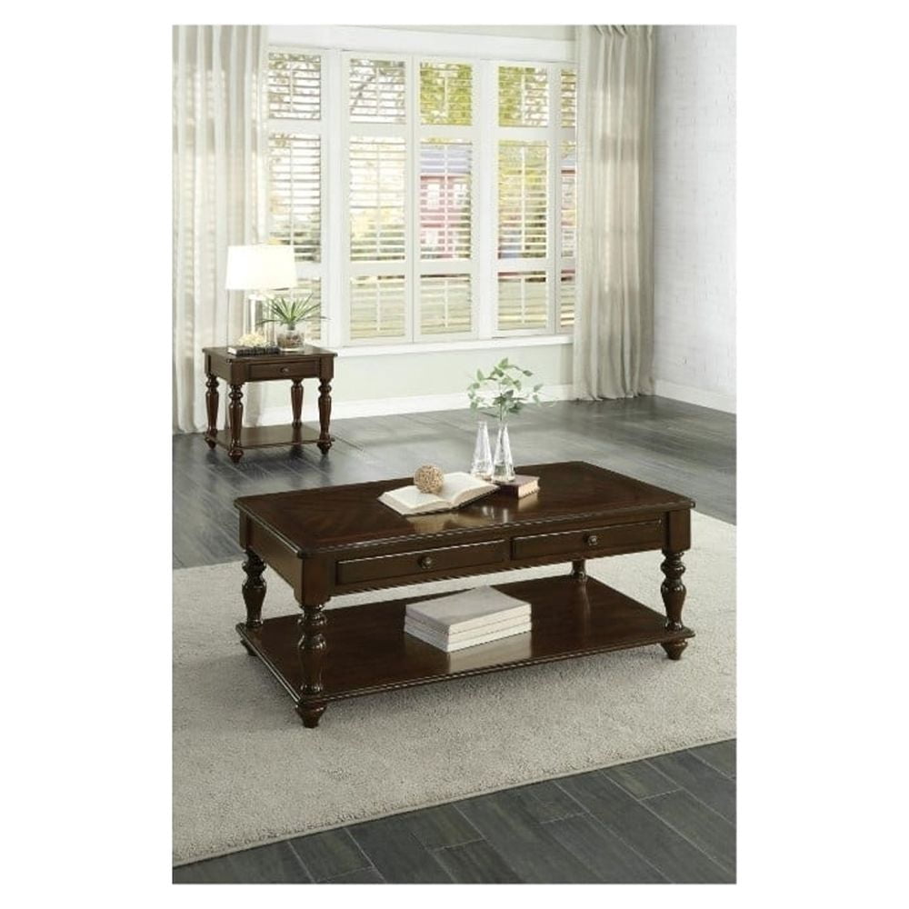 Turned legs provide support to the tabletops and display shelves of the Lovington Collection. Modern traditional styling of the caster-supported lift-top cocktail table is achieved with a blend of classic accents – turned legs, knob hardware, espresso finish, and creative functionality. Each of these elements combines to create a stylish look for your home’s living room. Coordinating end table is also available. Features: Made of walnut veneer, wood and engineered wood Espresso finish 1 lift top with underneath storage Lower shelf Casters for easy movement Assembly required Specifications: Product Dimensions: 20.00″ H x 48.00″ W x 26.00″ D Product Weight: 92.5 lbs