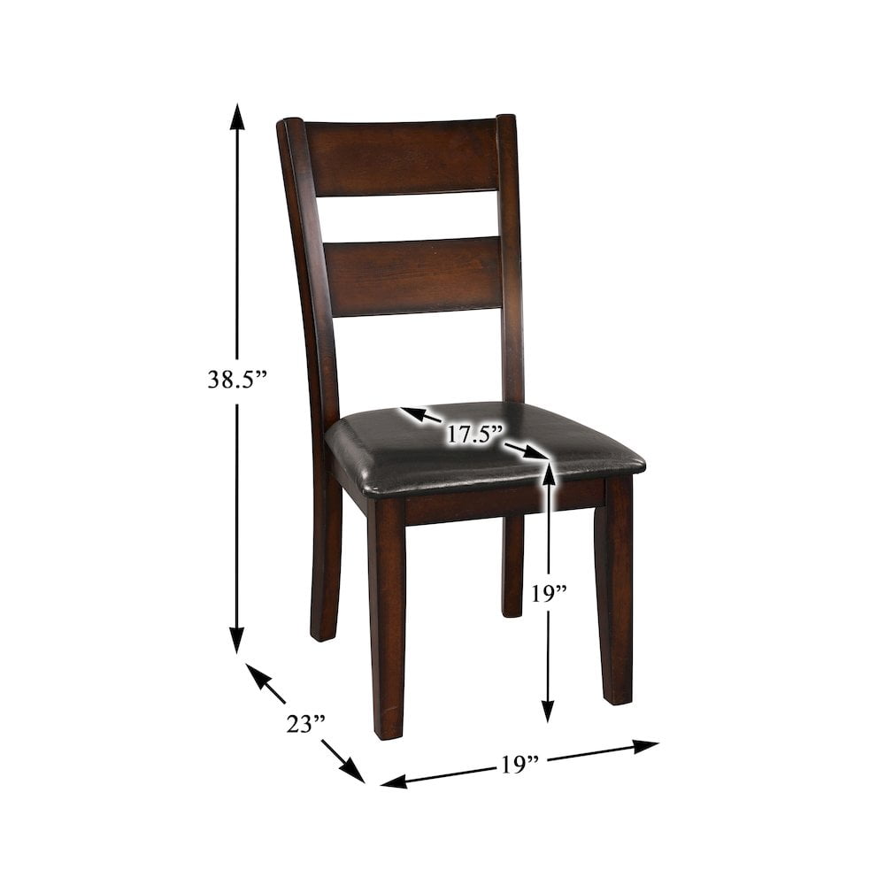 Transitionally styled for your home is the Mantello Collection. The dining height chair’s cherry finish over mango veneer and classic styling will provide the perfect seat for your mealtime gatherings. Dark brown bi-cast vinyl covers the side chairs for complementing contrast to the wood’s finish. Features: Wood frame Cherry finish Faux leather upholstery Specifications: Product Dimensions: 38.75″ H x 19″ W x 23″ D Seat Dimensions: 19″ H x 19″ W x 17.5″ D Product Weight: 37.5 lbs Weight Capacity: 250 lbs