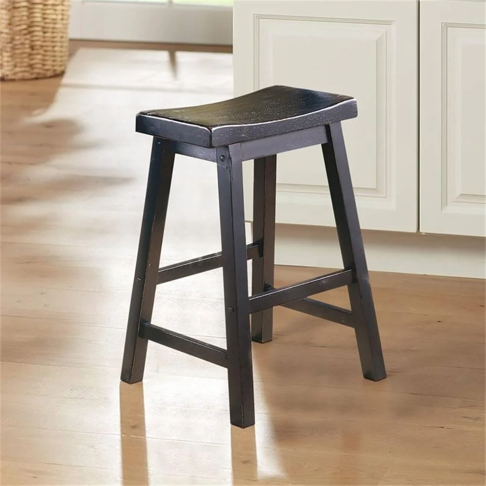 Lexicon Saddleback 24″ Solid Wood Counter Stool in Black (Set of 2)