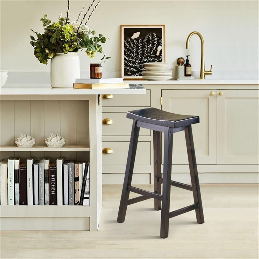 Lexicon Saddleback 29″ Solid Wood Bar Stool in Black (Set of 2)
