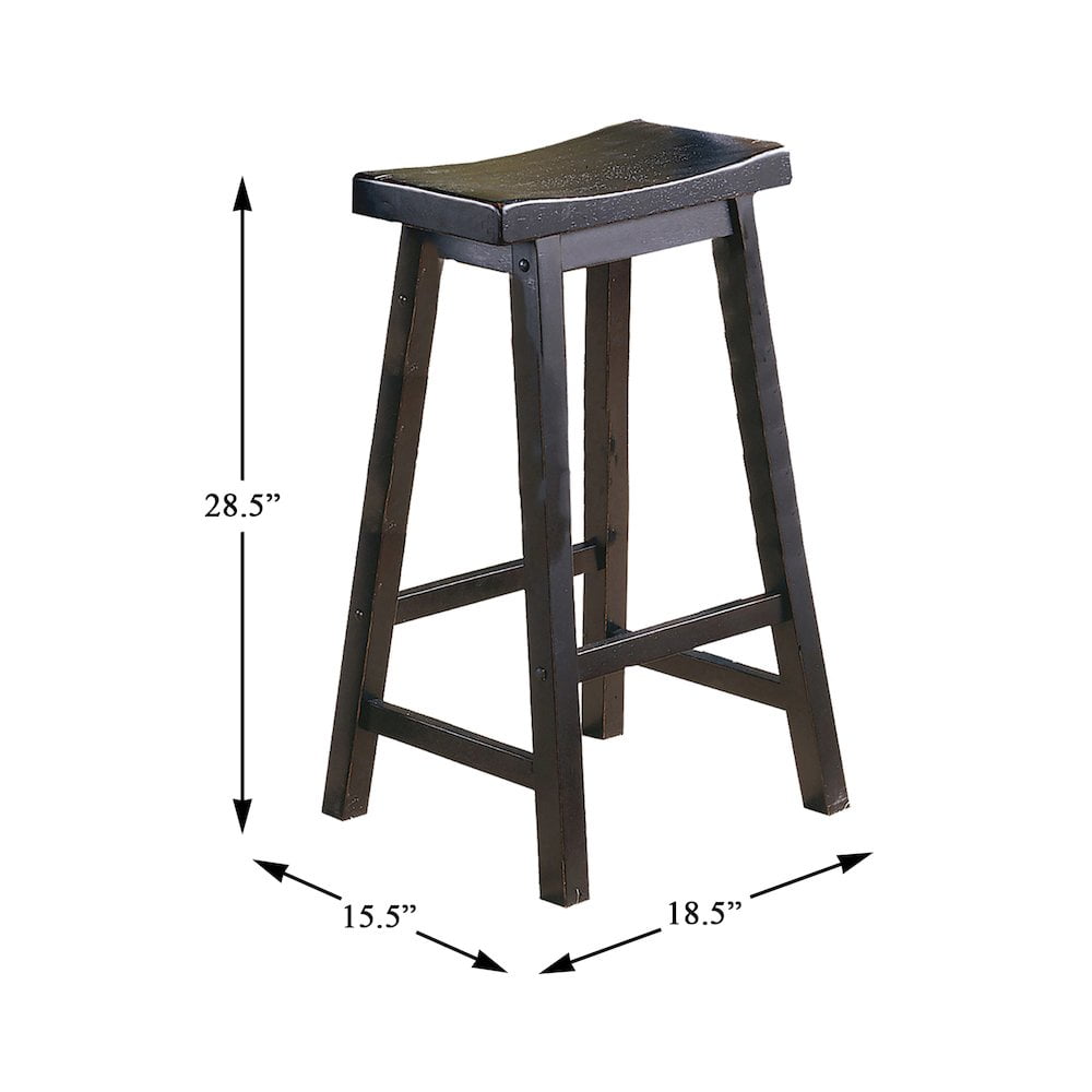 The saddle seat stools and 29-inch height of the Saddleback Collection are designed for placement within your casual dining area. The black sand-through finish allows for neutral complement to your dining space. Offering both durability and contemporary style. With a weight capacity of 250lbs, it’s designed for reliable everyday use. Assembly is required. Features: Solid wood frame Black finish Bar height design Assembly required Minimum order qty 2 Specifications: Product Dimensions: 29.00″ H x 18.00″ W x 9.50″ D Seat Width: 17.75″ Seat Depth: 9.25″ Seat Height: 28.75″ Product Weight: 24.5 lbs Weight Capacity: 250 lbs