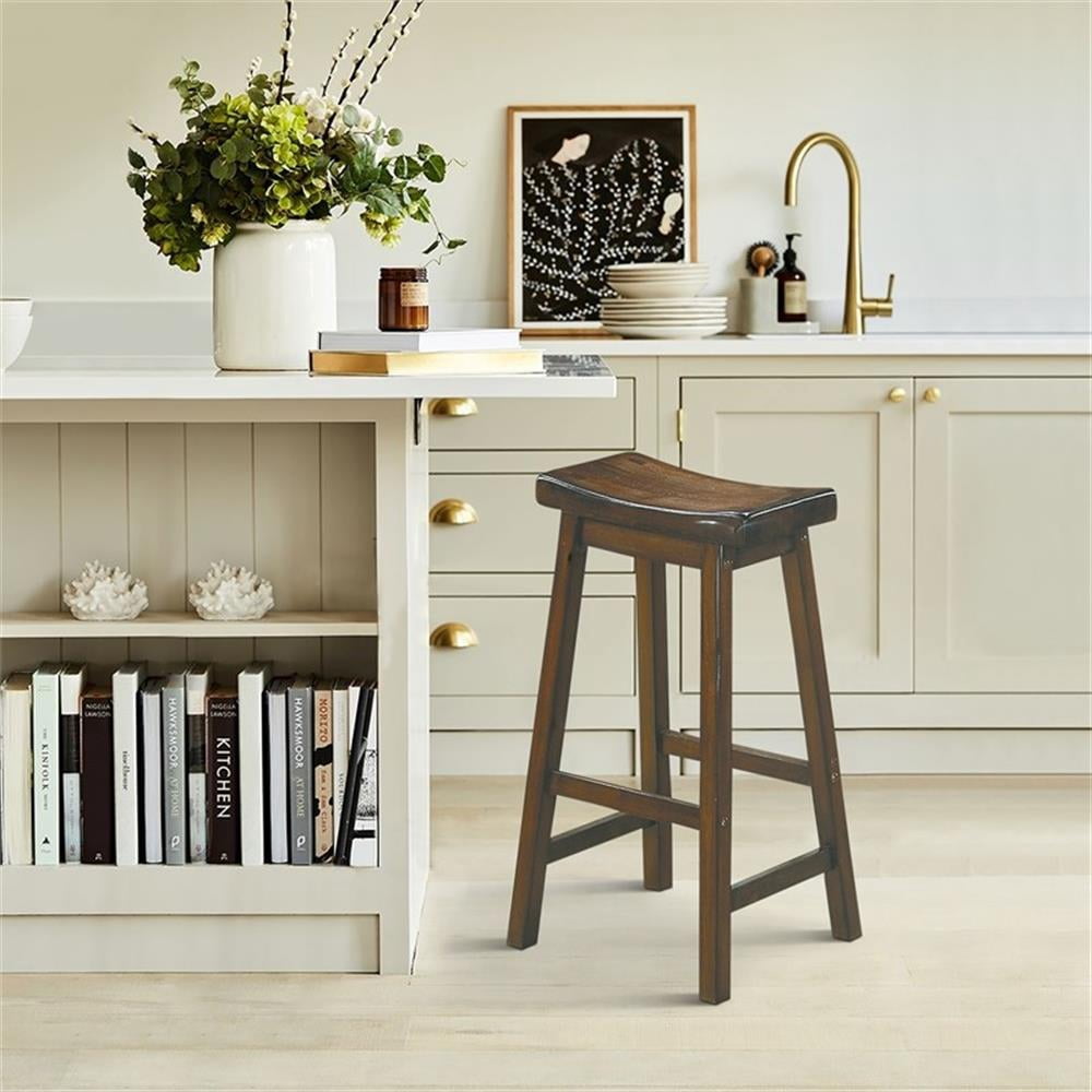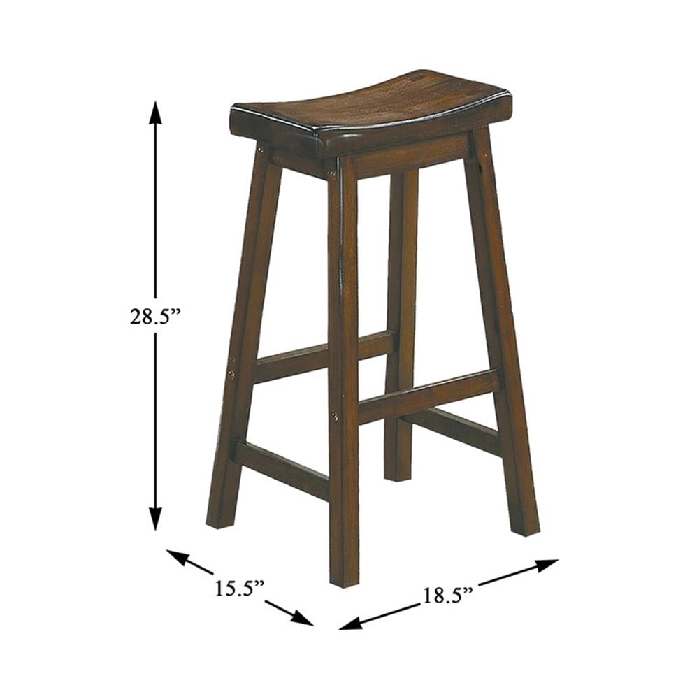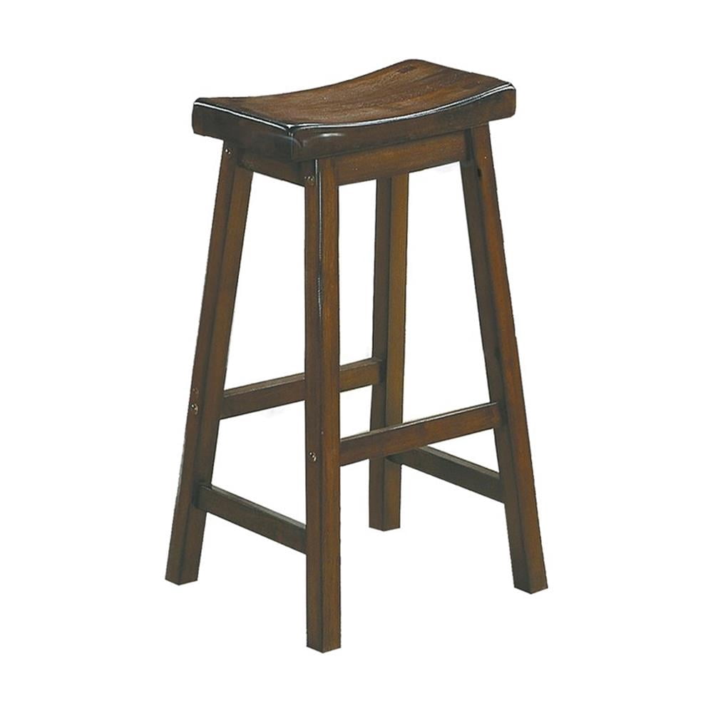 The saddle seat stools and 29-inch height of the Saddleback Collection are designed for placement within your casual dining area. The distressed cherry finish allows for neutral complement to your dining space. Features: Solid wood frame Cherry finish Bar height design Assembly required Minimum order qty 2 Specifications: Product Dimensions: 29.00″ H x 18.00″ W x 9.50″ D Seat Width: 17.75″ Seat Depth: 9.25″ Seat Height: 28.75″ Product Weight: 24.5 lbs Weight Capacity: 250 lbs