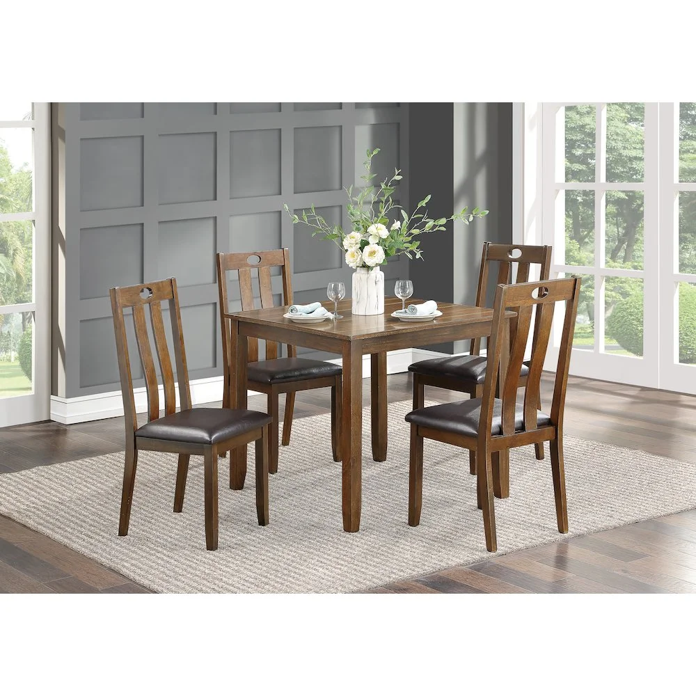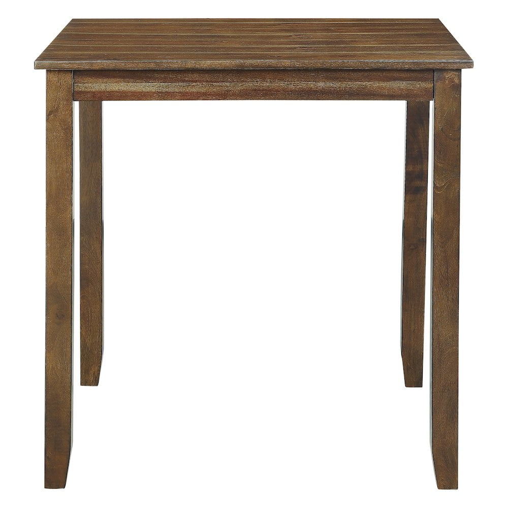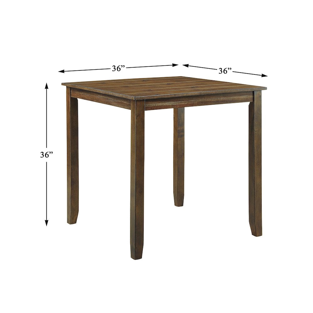 The transitional styling of the Weston Collection is paired with convenience to create a dining set scaled for your casual home. The 5-piece collection includes a counter-height table and four counter-height chairs. The acacia veneer of the group is highlighted with a medium brown finish and is further complemented by the brown bi-cast vinyl of the chair seats. Features: Includes counter height table and 4 counter height chairs Made of acacia veneer, wood and engineered wood Brown finish Faux leather upholstery Counter height design Seats 4 Assembly required Specifications: Product Dimensions: 36.00″ H x 36.00″ W x 36.00″ D Table Dimensions: 36 x 36 x 36 Chair Dimensions: 18.5 x 20 x 40 Table Dimensions: (Apron to floor) 33″ Leg Dimensions: (Distance between legs short side) 29.75″ Leg Dimensions: (Distance between legs long side) 29.75″ Seat Width: 18.5″ Seat Depth: 15.5″ Seat Height: 24.5″ Product Weight: 109 lbs