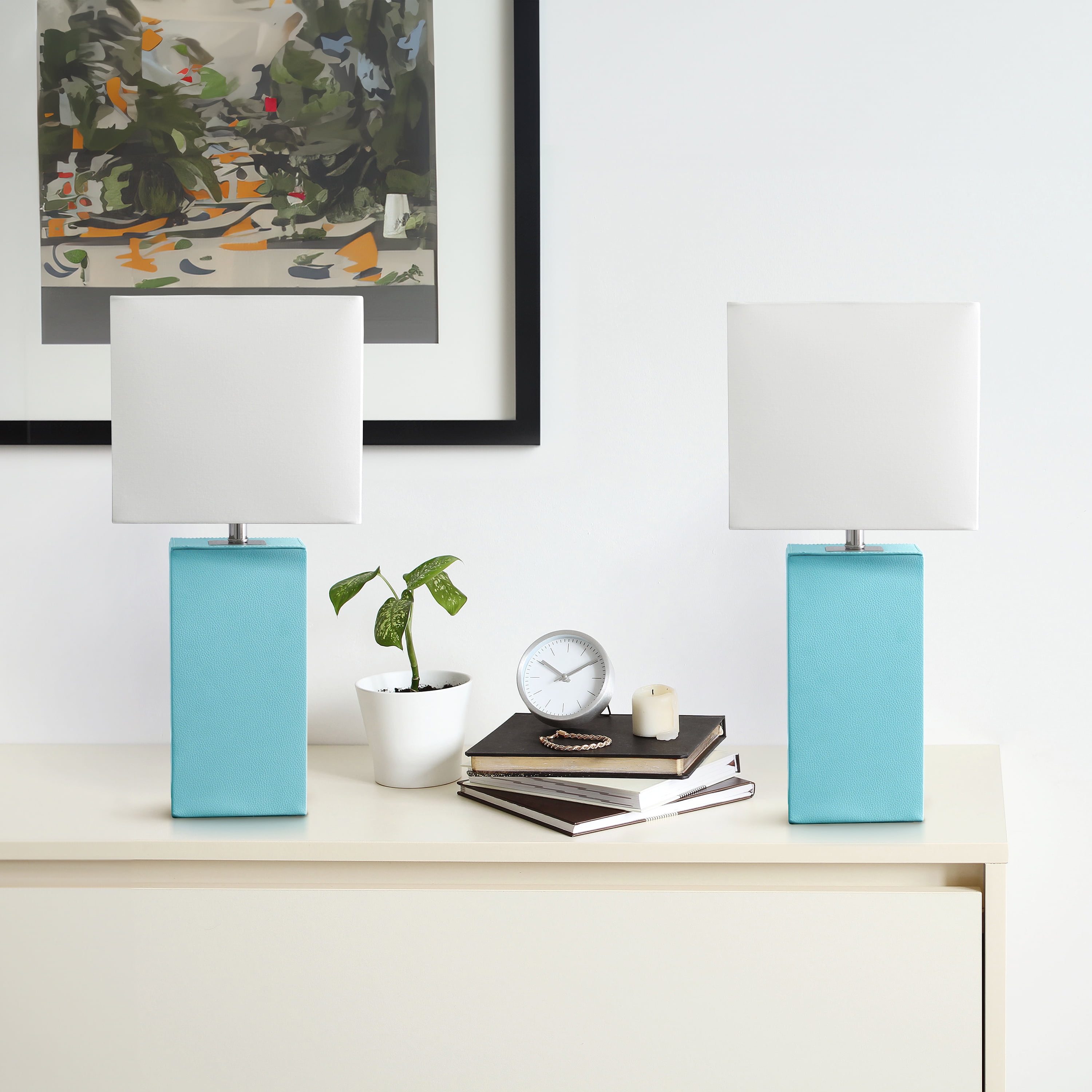 Lexington 21″ Aqua 2 Pack Leather Modern Bedside Table Lamp Rectangular