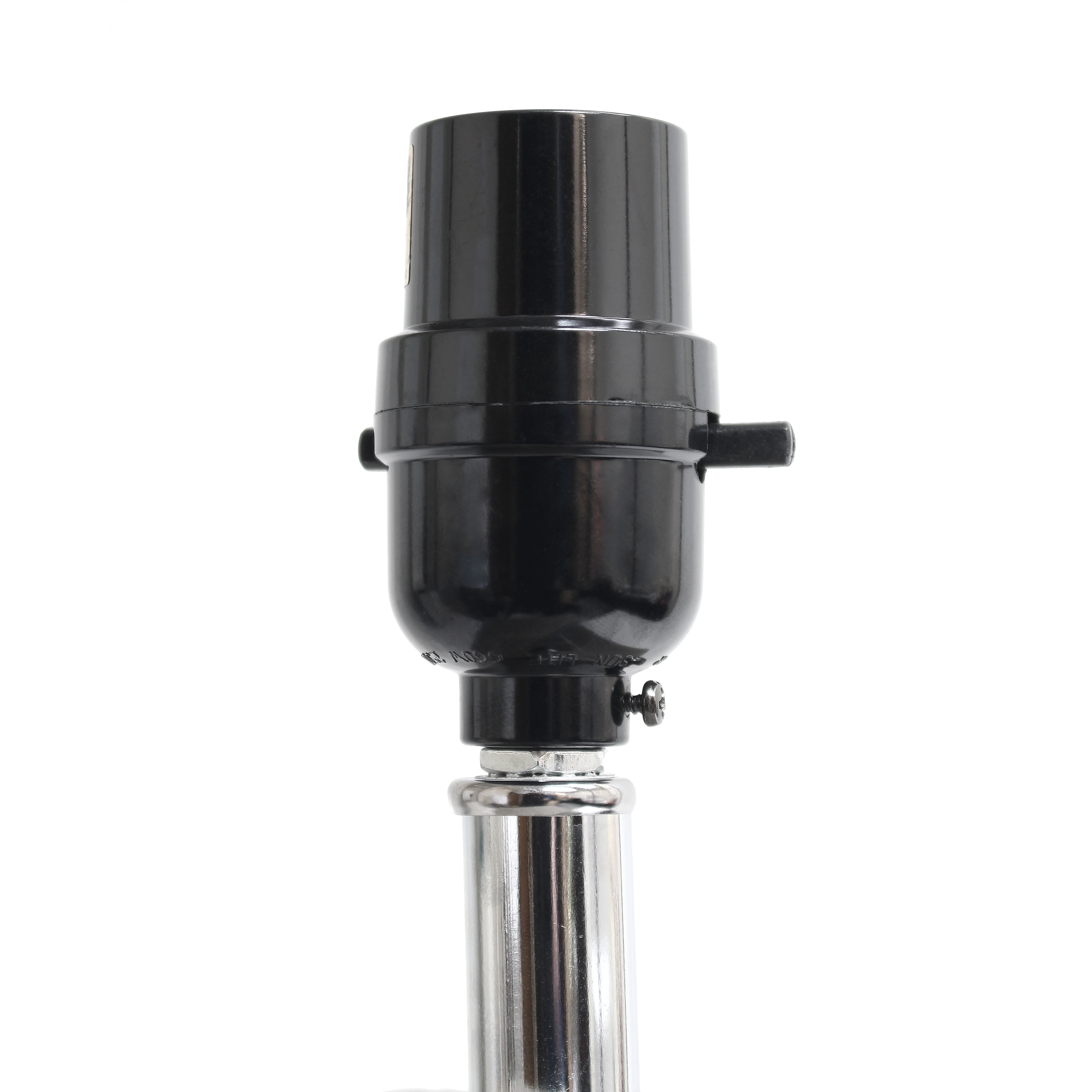 Table lamp set includes 2 x rectangle shaped white fabric shades for a clean, fresh look Table lamp set includes 2 x leather wrapped rectangular bases Features a push pin on socket of the lamp for accessibility Each table lamp requires 1 x 60 watt equivalent type A19 medium based bulb (not included) Each shade measures L: 10″ x W: 6″ x H: 9″ This table lamp arrives mostly assembled, eliminating the need for any intricate setup. The only step involved is attaching the shade to the socket.