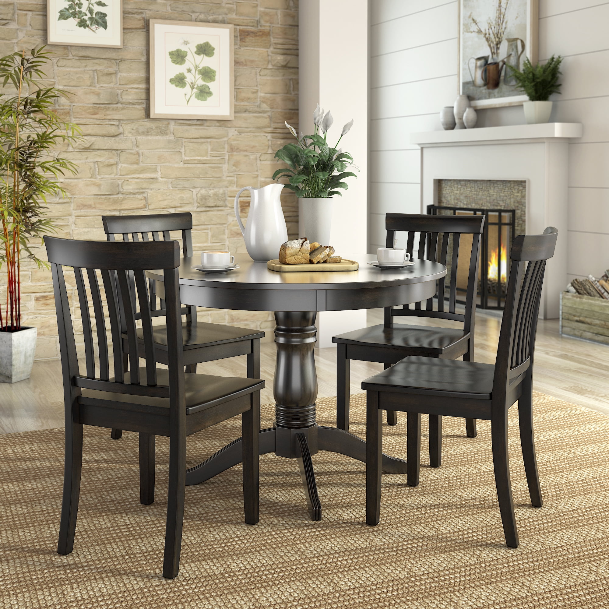 Lexington 5-Piece Wood Dining Set, Round Table and 4 Mission Back Chairs, Black