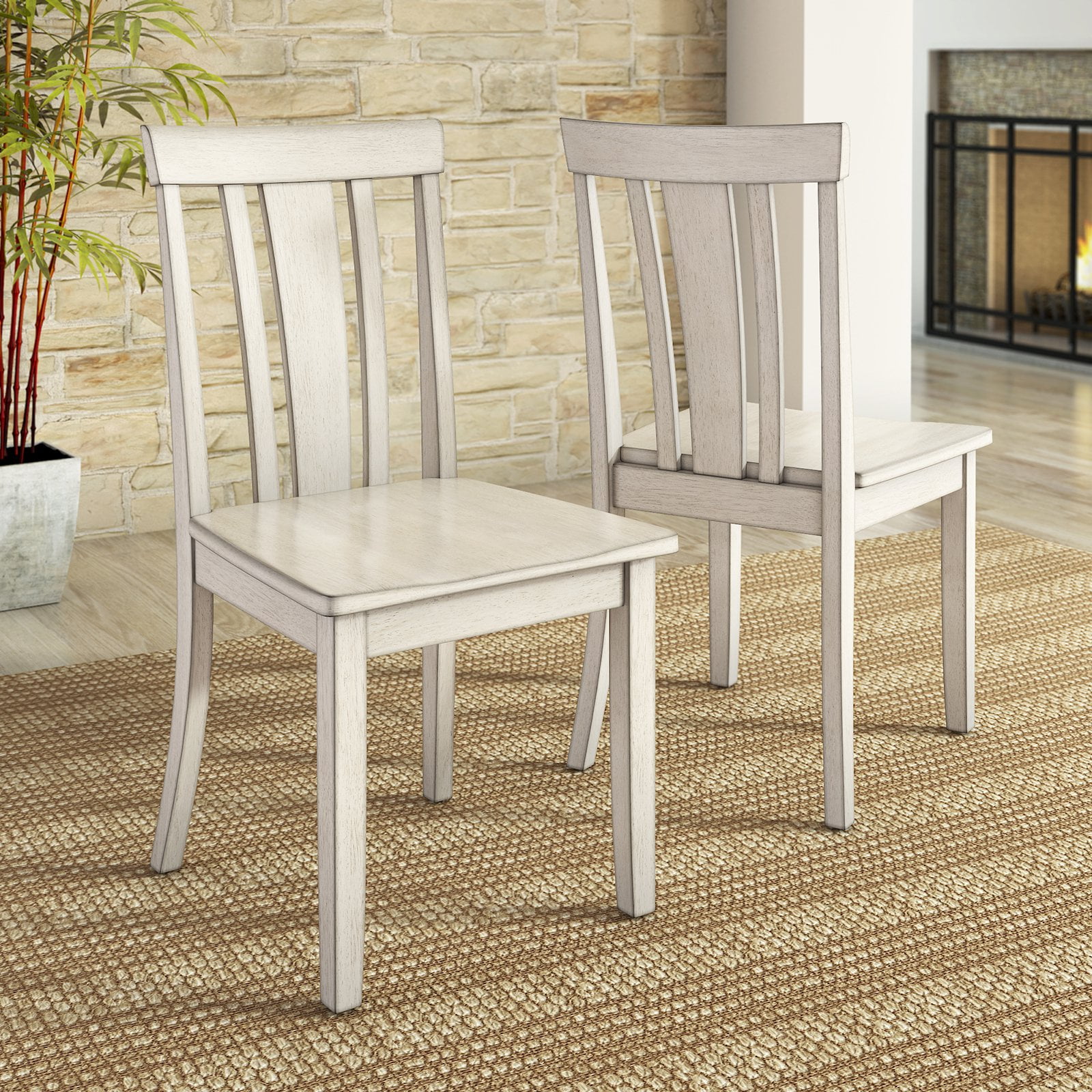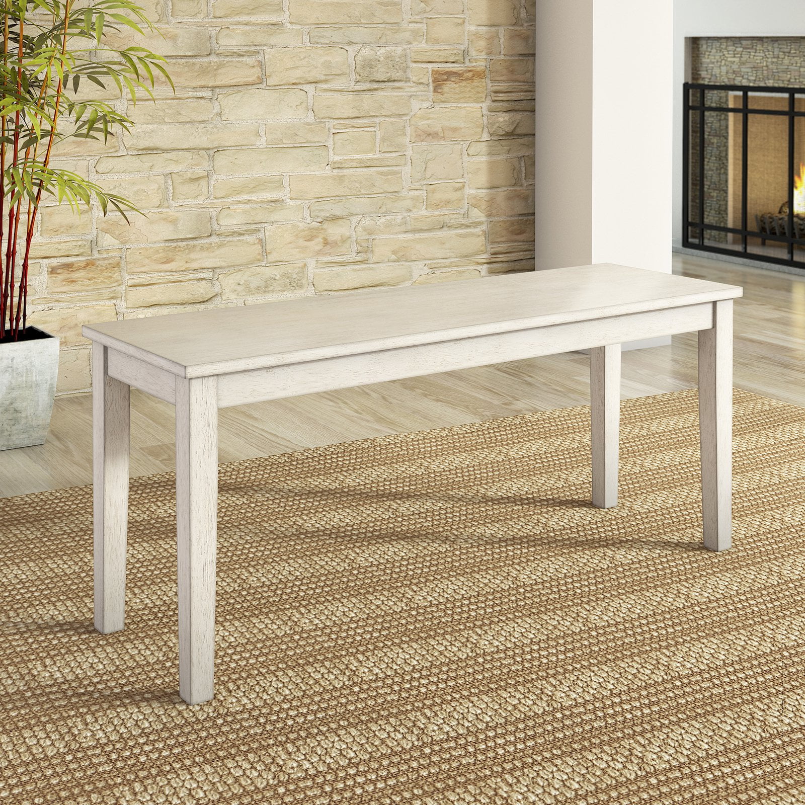 Lexington 6-Piece Dining Set with 60 Dining Table, Bench and 4 Slat Back Chairs, Antique White
