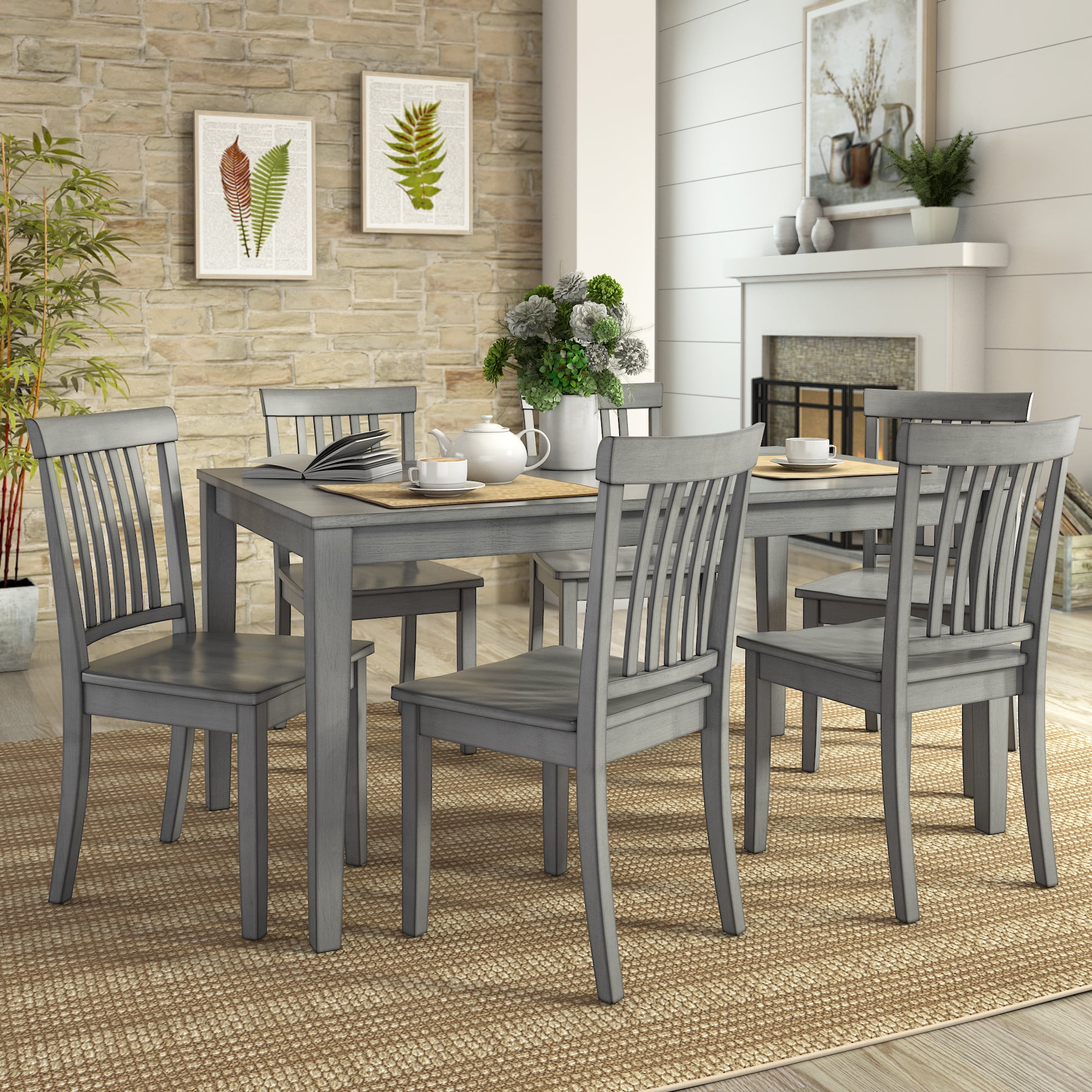 Lexington Large Wood Dining Set with 6 Mission Back Chairs, Antique Grey