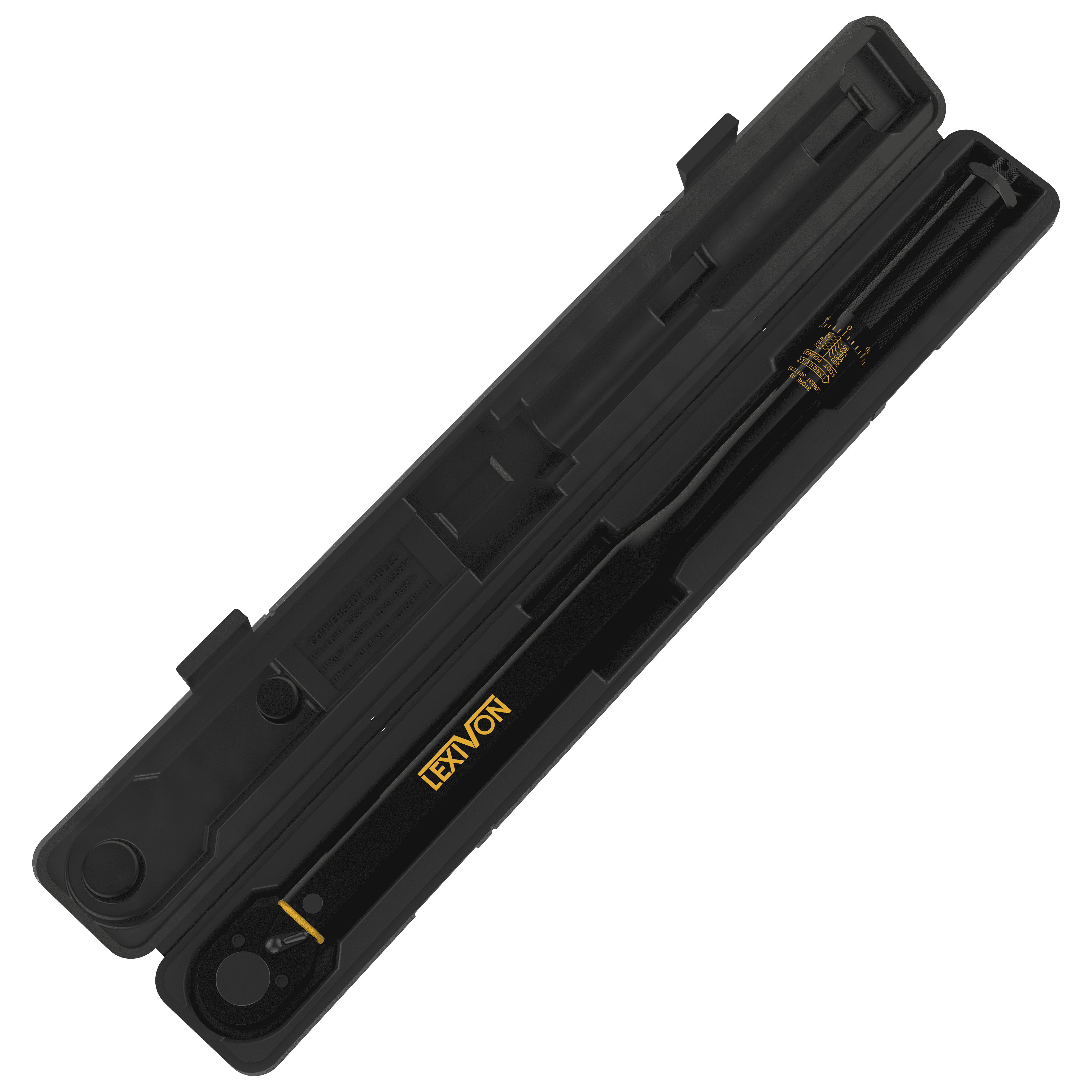 LEXIVON Click Type Torque Wrench is a mechanically advanced, uniquely calibrated, and certified instrument. As a company policy, we believe in reaching goals far beyond the standard to achieve our customer’s unmatched satisfaction from our products & service. Therefore each Torque-wrench undergoes multiple tests, Including durability & 3 different sets of calibration tests, resulting in a personal calibration chart signed by the testing mechanic & carrying a traceable serial number. The LEXIVON Torque Wrench is a feat of a perfect balance between high-class patented mechanism and modern luxury product design. Have full control over your tool & equipment allowing you to work confidently, eliminating guesswork, and preventing damage from the common tendency to tighten fasteners to a vehicle or equipment in the wrong manner. Durability is your essential right. Built for consistent performance and long-lasting reliability, The LEXIVON torque wrenches are made from the best sturdy materials possible from the full steel Zero-Plastic body & mechanism to the hardened Chrome-Vanadium alloy ratchet gear head. Torque scales stand out & are easily observable on the shaft with the brilliant patent-pending rich text to backgrounds contrast. featuring striking yellow scale markings on the novelty gloss Electro-Black background, Easily catching the eye even in low light conditions. Patented internal mechanism emphasizing the smooth-twist rotating handle preventing hand fatigue & reducing effort of up to 62-Percent. embraced by a slick non-slip comfortable knurled grip twist-handle. Included with the product are: A hard sleek case for proper convenient storage, calibration/testing certificate & an operator’s manual, including all safety information.