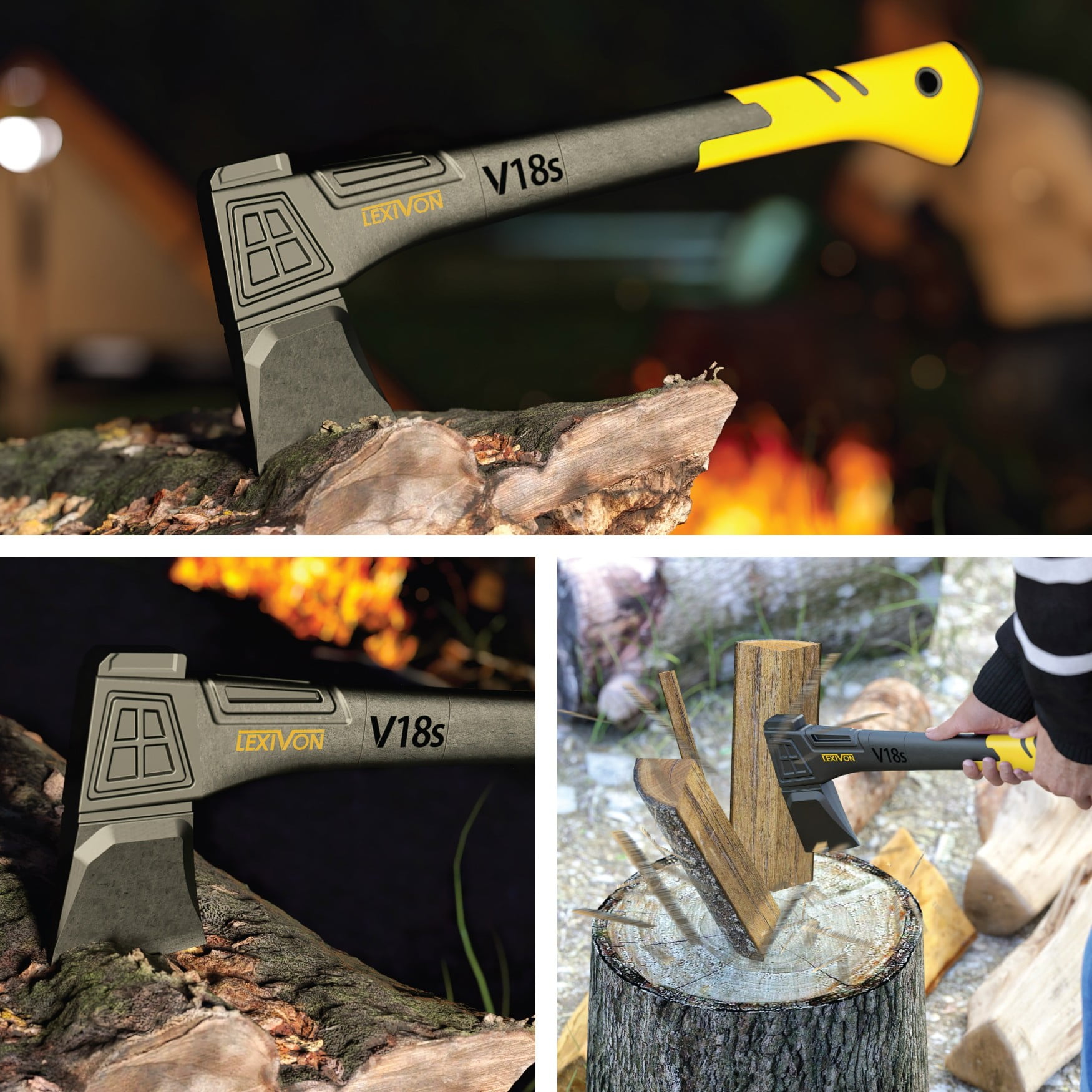 LEXIVON V18s Splitting Axe, 18-Inch Lightweight Fiber-glass Composite Handle & Ergonomic TPR Grip | Protective Carrying Sheath Included (LX-V18s)