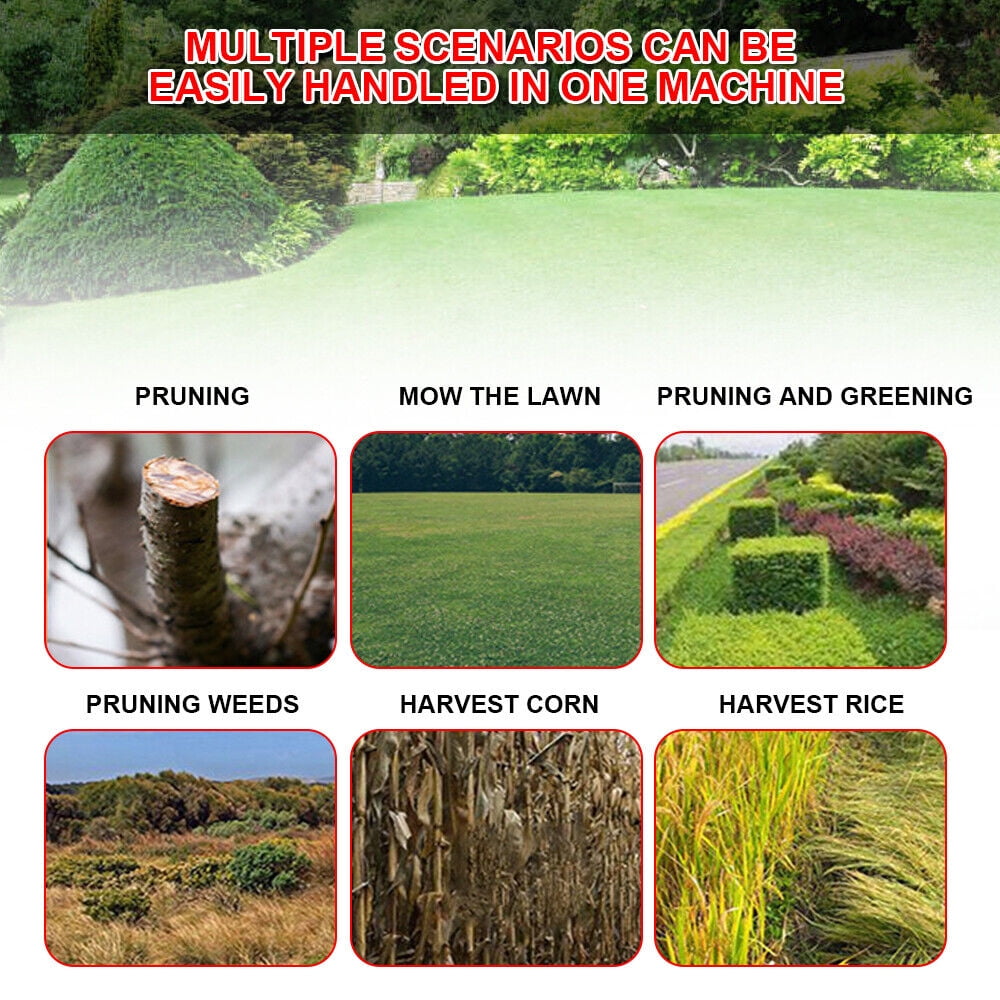 ★High quality: Made of high-quality stainless steel tube, ABS plastic, high-power copper motor, lightweight and comfortable, ergonomic handheld design, suitable for every user. These lightweight trimmers will do most of the work for the user. ★Rugged Resin Blade And Metal for Multiple Operations: 5 resin blades, 2 metal blades and 1 metal saw blade, meet your daily needs. ★Adjustable Mower Head and Shaft: The length can be adjusted to suit your habits; different cutting heads can help you tilt various parts of the lawn and easily Enter hard-to-reach corners, provides you with a more comfortable experience. ★Powerful and Safe Garden Trimmer: The handle of this weed eater uses a durable aluminum telescopic tube, which can be adjusted to the length you need at any time, safe and easy to use.