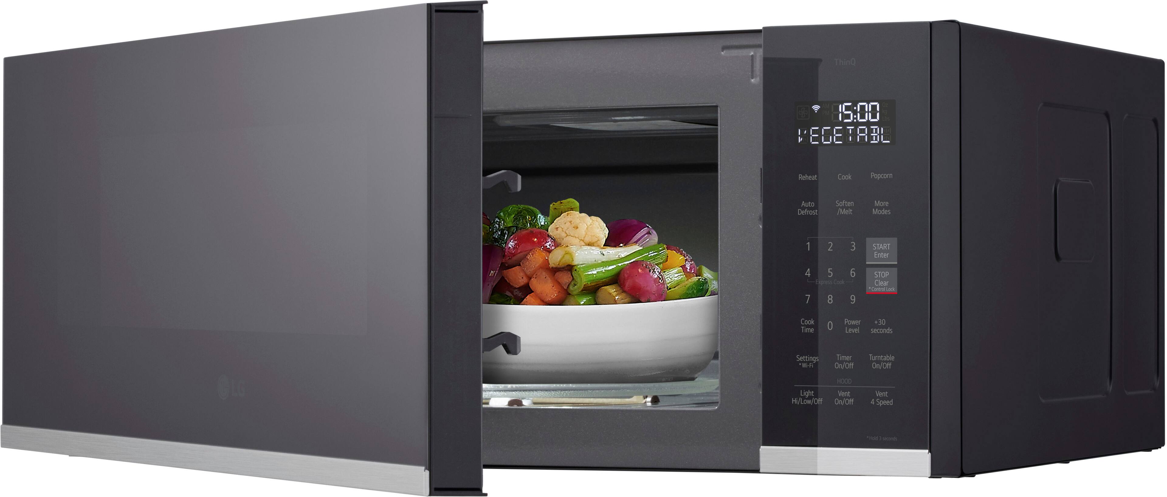 The ThinQ app offers control and convenience to help you simplify life and enjoy the comforts of home. Sync the microwave with a smart LG range or cooktop to auto-activate the fan and light when the cooktop is in use. Plus, access remote control, scan-to-cook, Smart Diagnosis, customer support, and more.
