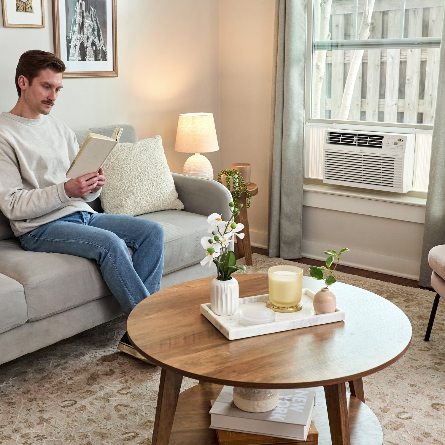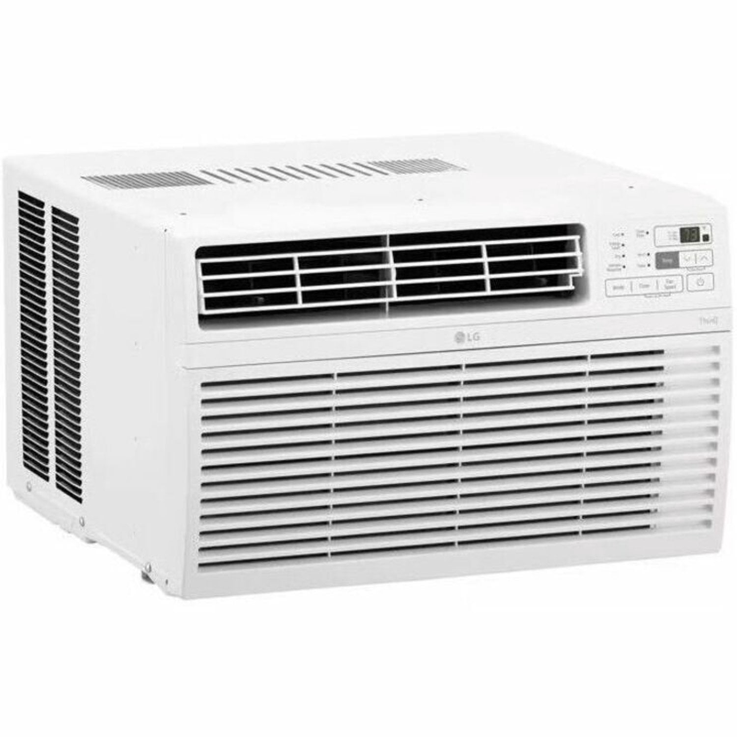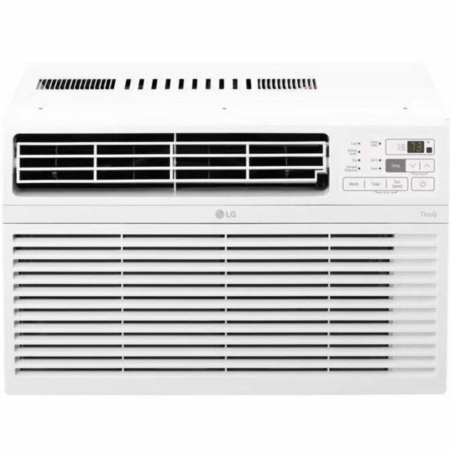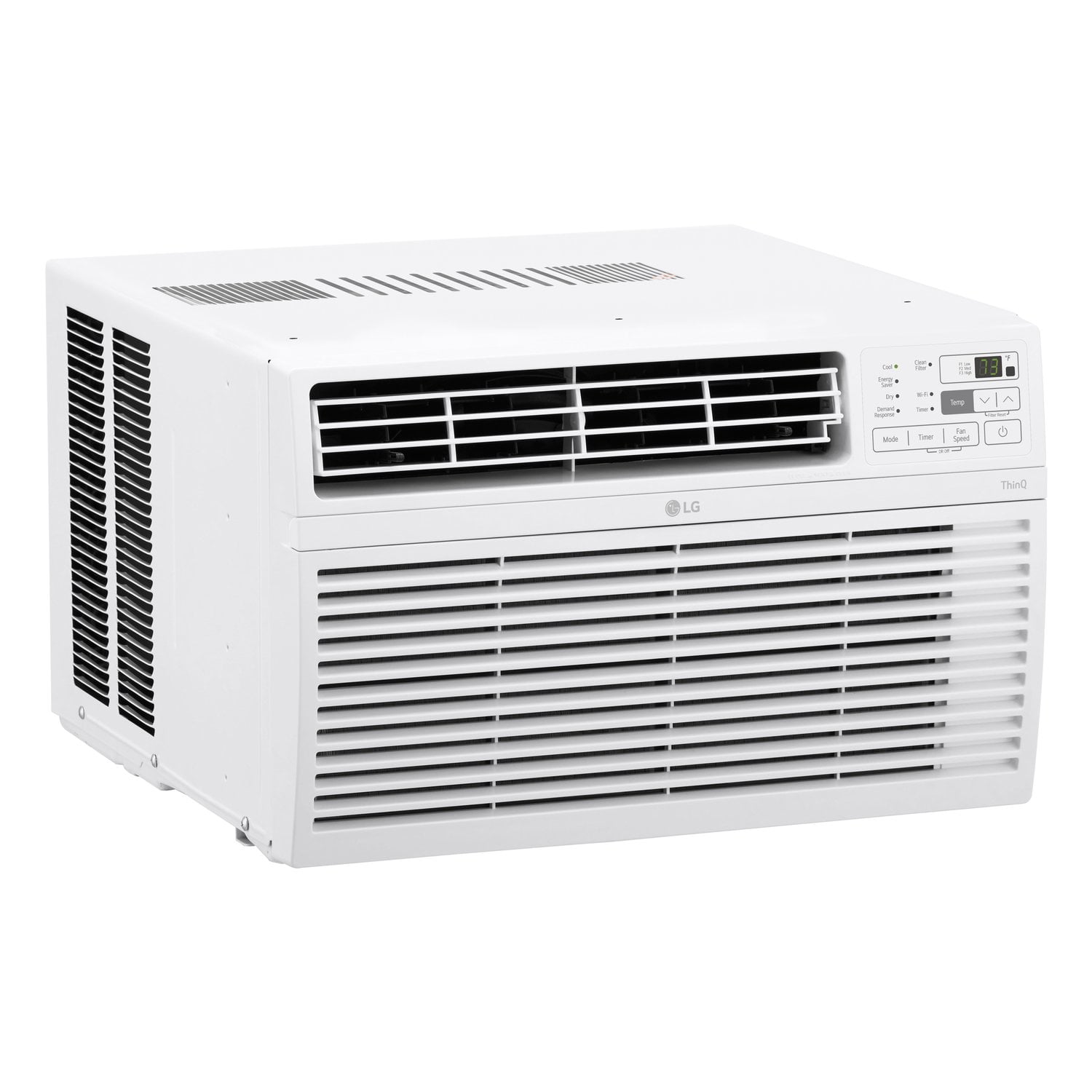 LG 10,000 BTU 450 Sq. ft Smart Window Air Conditioner with Remote, LW1017ERSM1 Cools a room up to 450-sq. ft. 3 cooling and fan speeds Compatible with Amazon Alexa and Google Home Operates at sound levels as low as 53dB (in low mode) Auto Cool mode 3 in 1 operation: Cool/Fan/Dry 3 cooling and fan speeds with auto cool