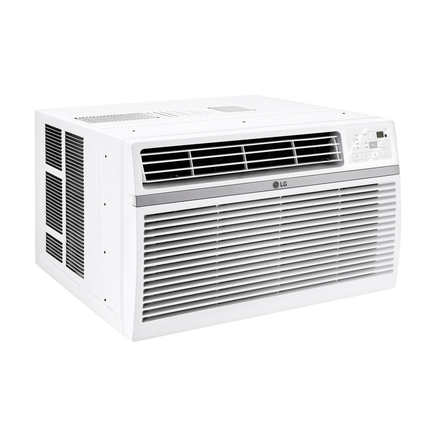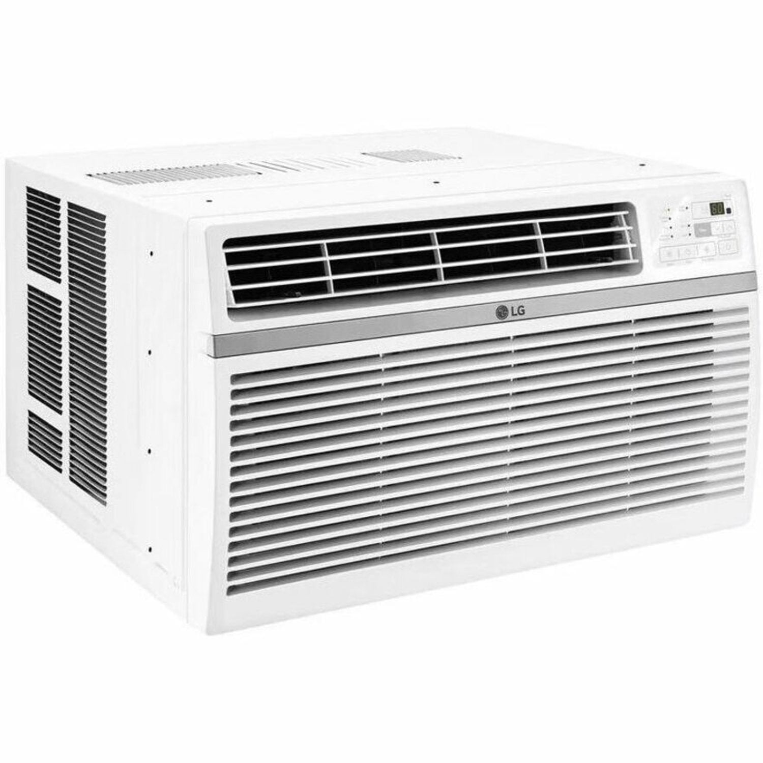 LG 12,000 BTU 550 Sq ft Window Air Conditioner, LW1224RD Cools a room up to 550-sq. ft. 3 cooling and fan speeds Auto Cool mode Auto restart will automatically turn the unit back on when power is restored after an outage Operates at sound levels as low as 53dB (in low mode) 3 in 1 operation: Cool/Fan/Dry Slide-out, washable filter