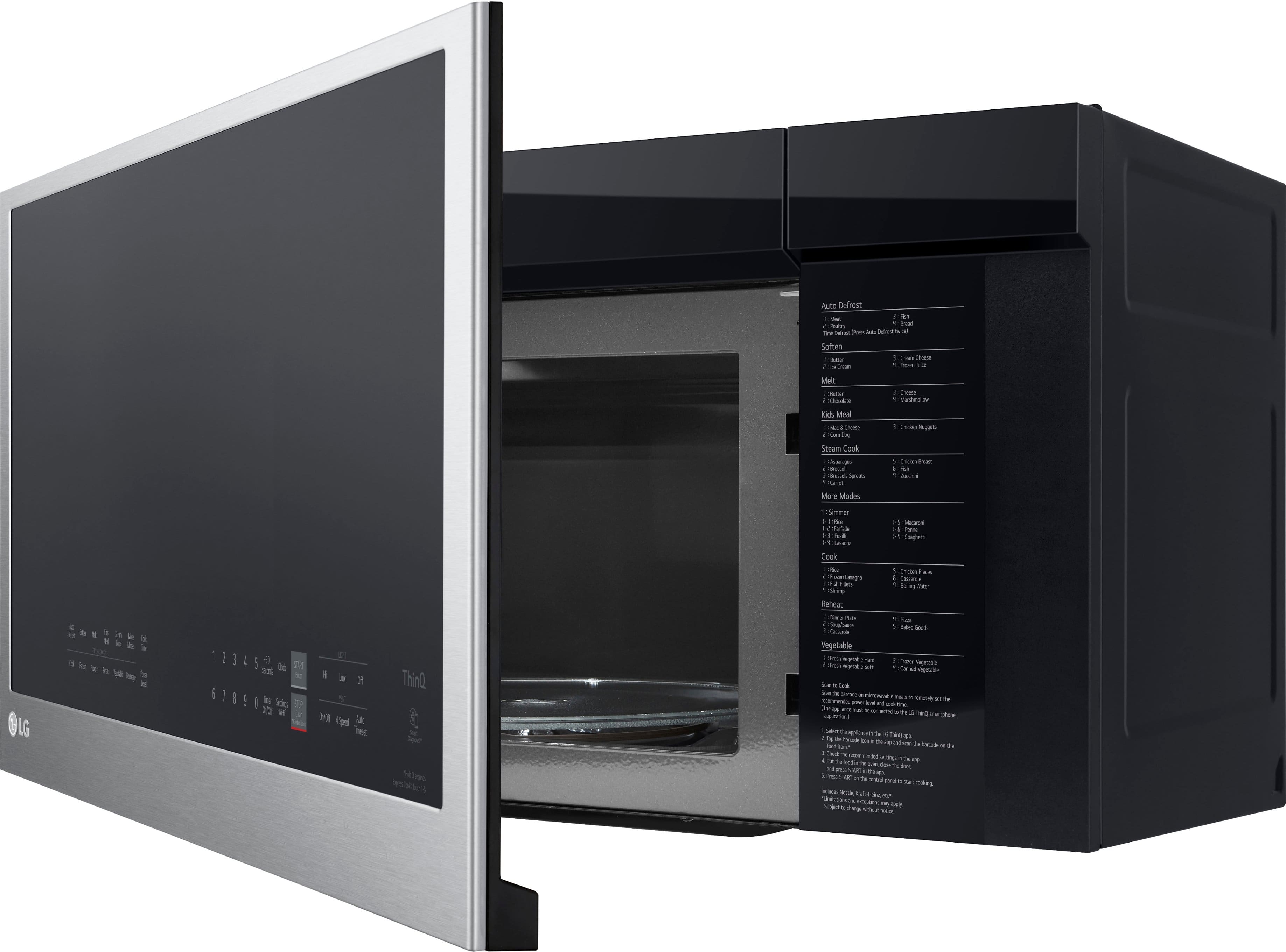 Use the ThinQ app to sync your microwave and range, scan-to-cook meals, check on your food, and adjust settings from anywhere. Select microwave features will work with Alexa and Google Assistant coming soon.