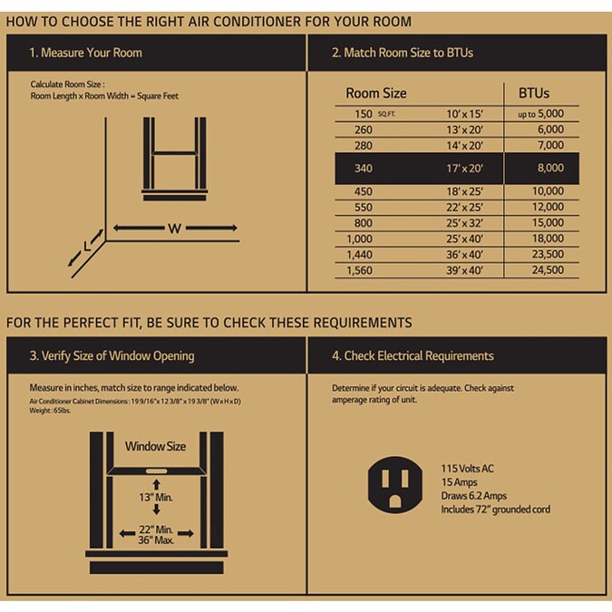 - LG Wi-Fi enabled 8,000 BTU Window Air Conditioner with remote is suitable for rooms up to 350 square feet