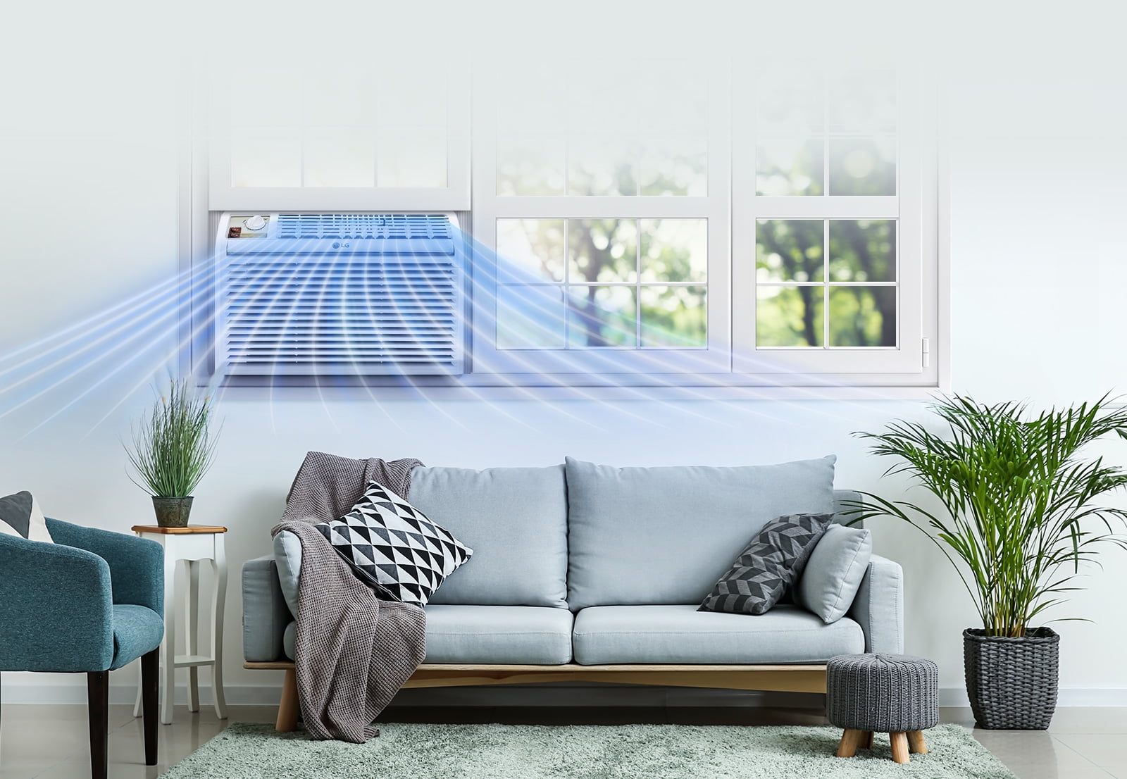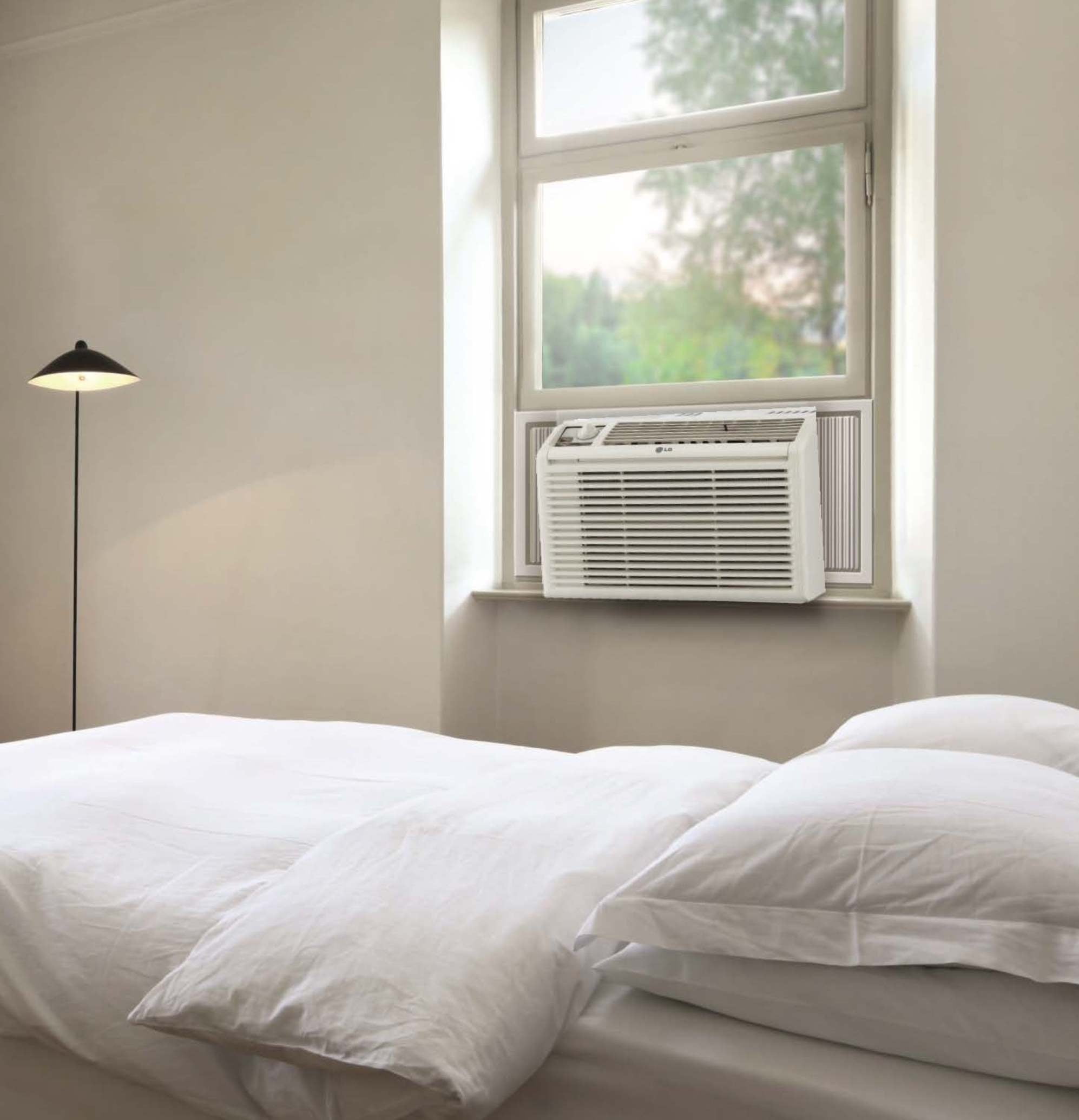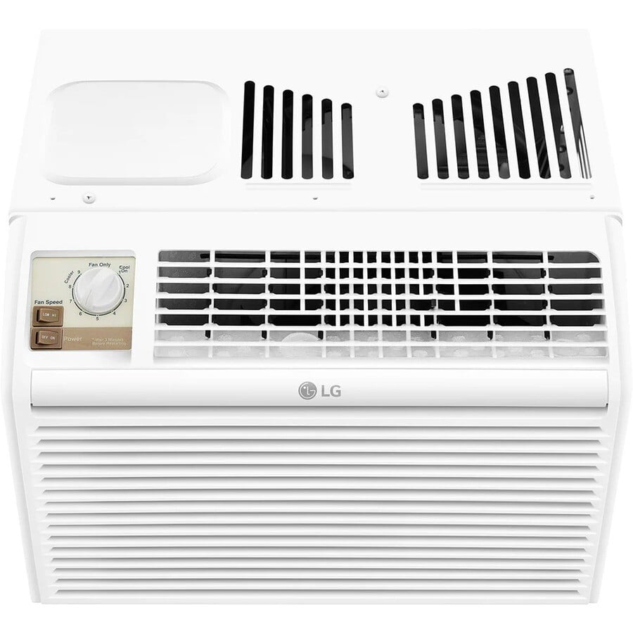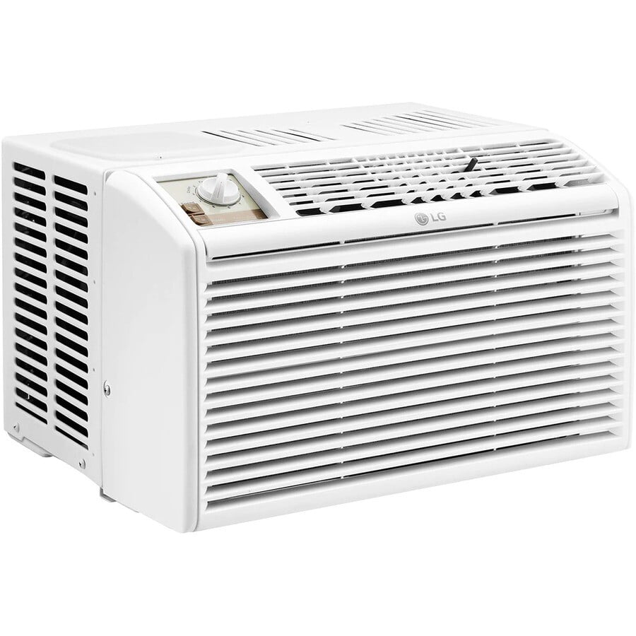 LG 5,000 115V 150 Sq ft BTU Window Air Conditioner with Mechanical Controls, White, LW5016 Install it at the window to maintain a steady temperature in your bedroom or office With 1465.36 W cooling power, enjoy a blast of cool air throughout your room Effectively cools area of up to 150 Sq. ft., this air conditioner is perfect for bedrooms Achieve climate control when and where you need it most with 2 fan speeds
