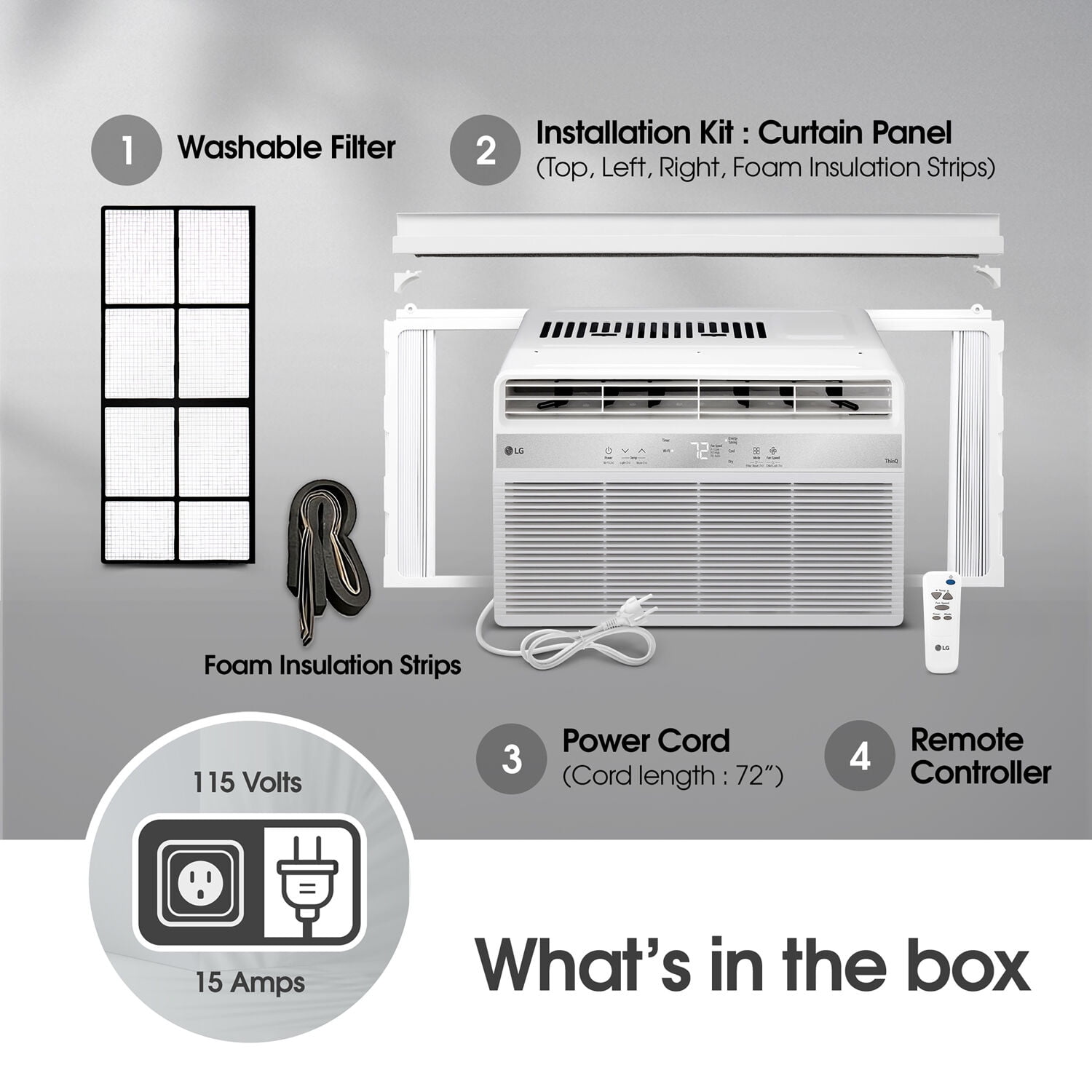 If you want to keep your space temperate and comfortable, it’s important to get the right air conditioner for the job! With a cooling capacity of 5,000 BTU, the LG LW5025R is ideal for cooling medium rooms up to 150 sq. ft. This 3-in-1 window AC features 3 cooling and fan speeds and a 24-hour timer to create a cooling schedule. Its user-friendly digital control panel and included remote control make it easy to use. 2-way air deflection lets the flow of air be directed where it’s needed most whether it’s cooling, dehumidifying or just circulating air. The included filter helps reduce the number of large airborne particles in your space, and it’s washable so when the check filter light comes on, you can remove it, wash it, and use it again. If there’s a power outage, the auto restart feature will automatically turn your unit back on when power is restored. In the package, you’ll find easy-to-follow guided installation instructions so you can set up your new window AC in no time.
