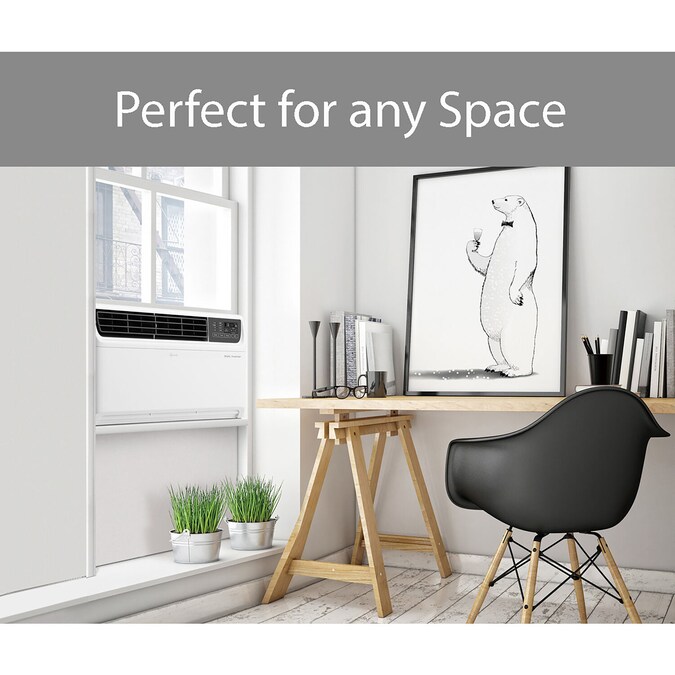 - LG 12,000 BTU Window Air Conditioner with Remote is suitable for rooms up to 550 square feet, featuring a tankless design for efficient cooling and dehumidification