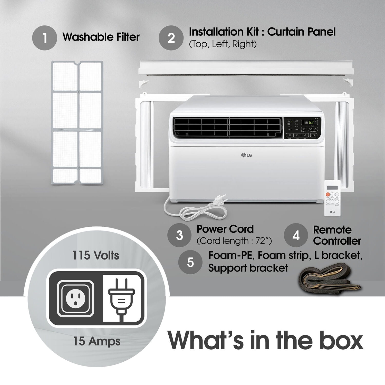 The LG Dual Inverter air conditioners are the best in cooling innovation. This ultra quiet unit operates at 44 dB in sleep mode, almost as quiet as a library. In addition, the Dual Inverter technology allows the unit to operate efficiently saving you as much as 35% on energy costs. Cool your home from anywhere using LG ThinQ technology to control your air conditioner with your phone or use with Amazon Alexa and Hey Google to have control with the sound of your voice. 4 cooling and fan speeds and a 24 hour timer allow you to create a cooling schedule to suit your needs. 4-way air deflection lets the flow of air be directed where it’s needed most whether cooling, dehumidifying or just circulating air. If there is a power outage, the auto restart feature will automatically turn your unit back on when power is restored. Other features include an LCD remote control, easy window installation kit, removable (washable) filter and a check filter alert.