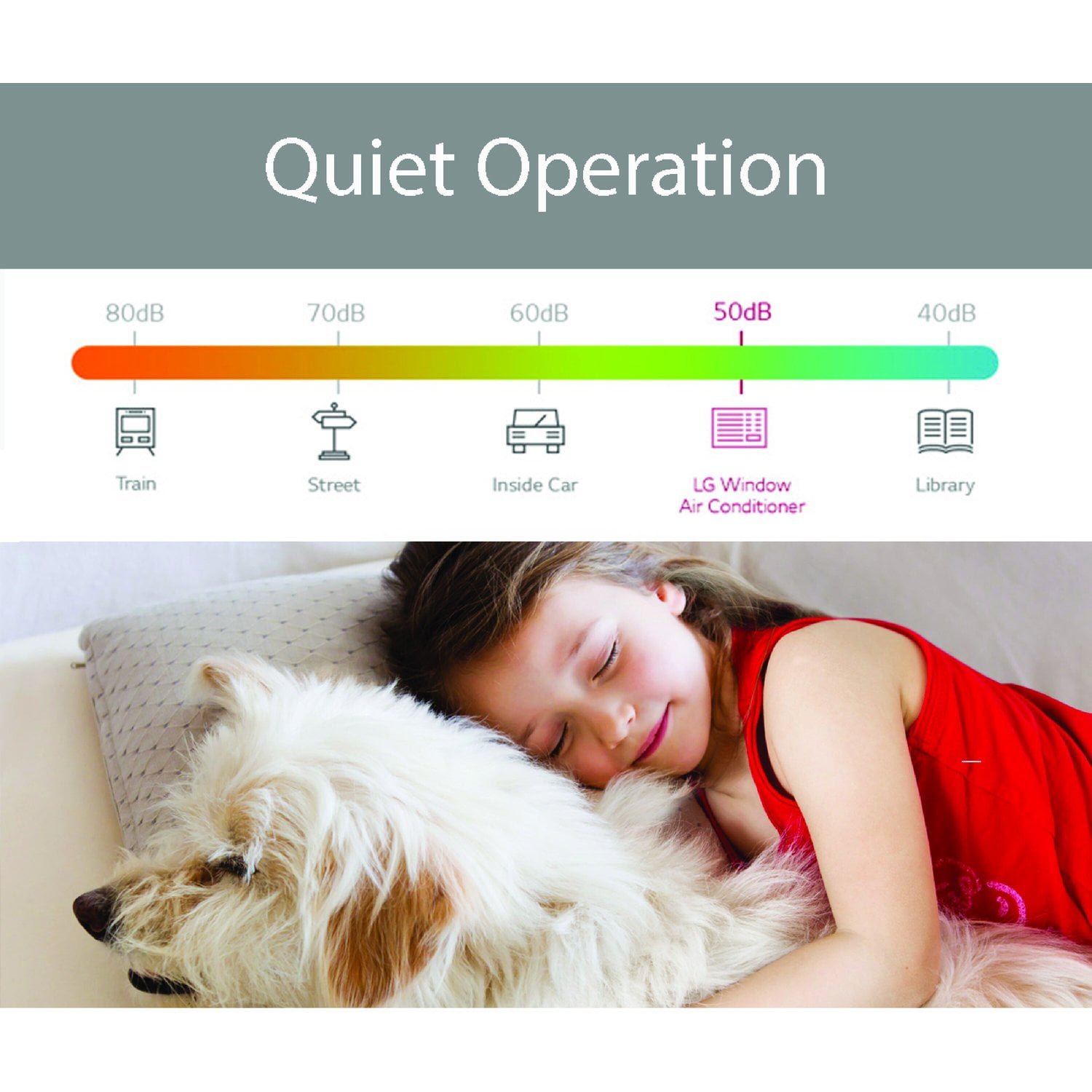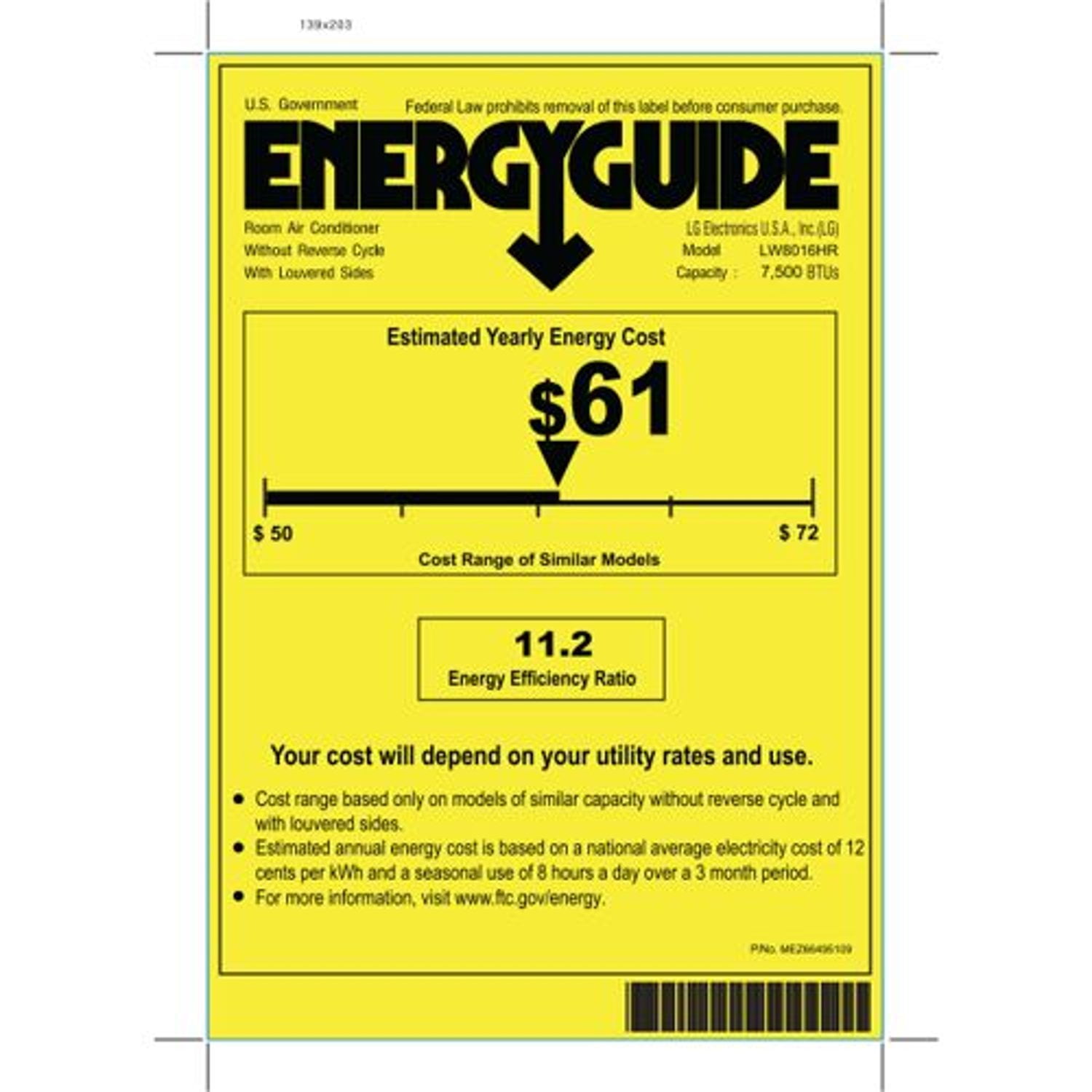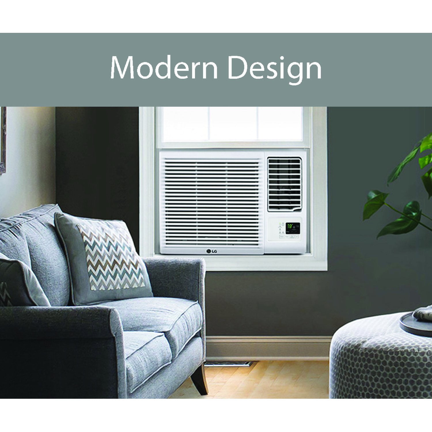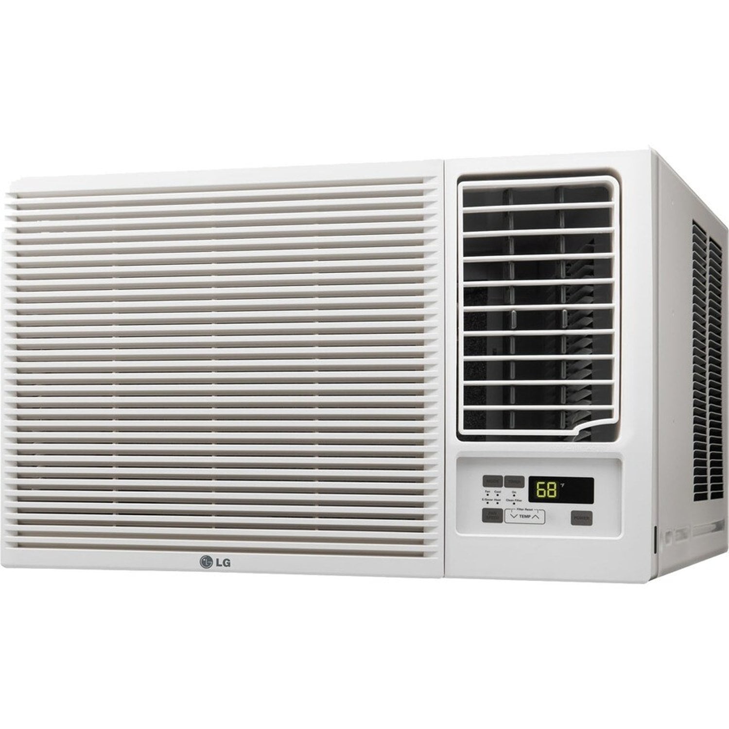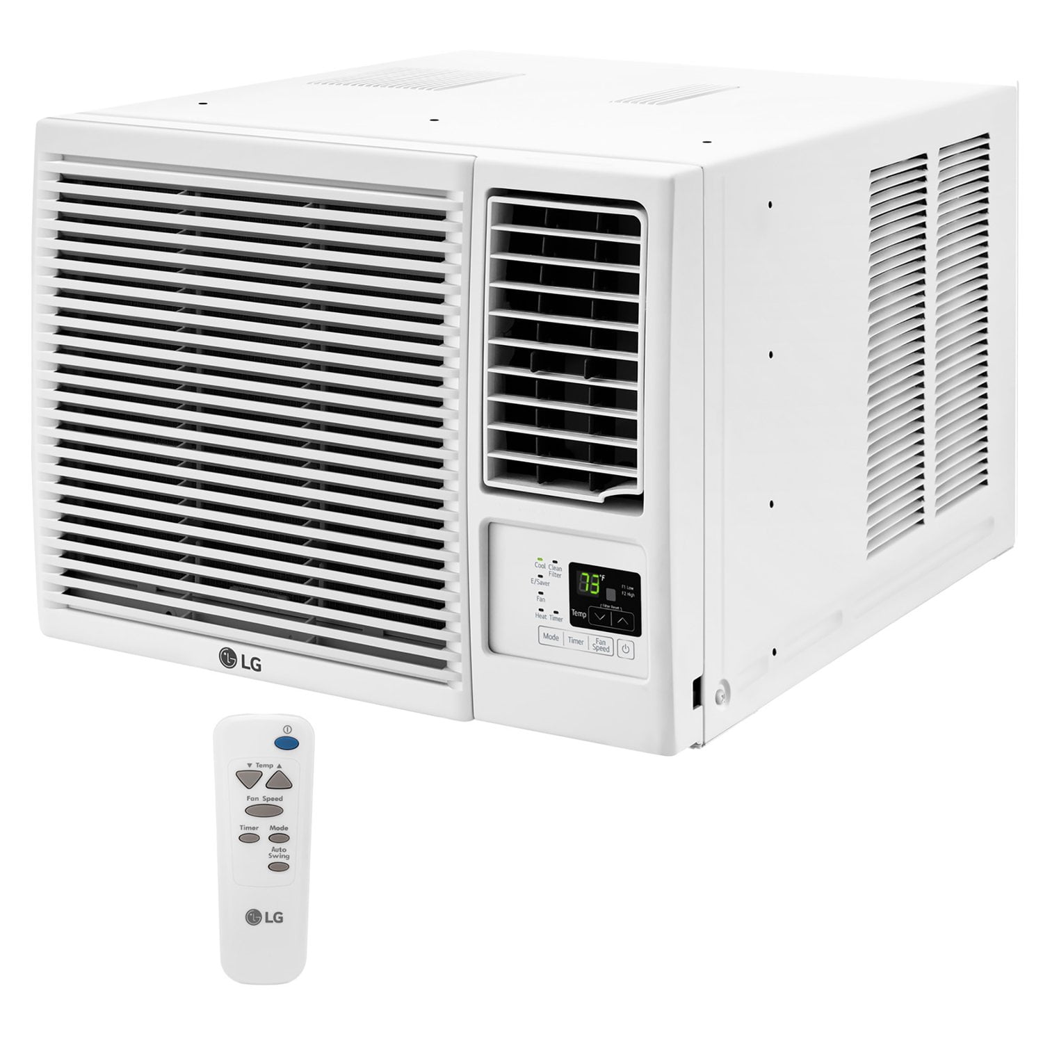Keep your house feeling comfortable no matter what the weather is like outside! The LG LW8016HR is ideal for cooling medium rooms up to 350 sq. ft. You can even add a bit of warmth on cooler days with the supplemental heat option. This unit has 2 cooling and fan speeds and a 24 hour timer to create a cooling schedule. 4-way air deflection lets the flow of air be directed where it’s needed most whether cooling, heating, dehumidifying or just circulating air. If there is a power outage, the auto restart feature will automatically turn your unit back on when power is restored. Other features include a remote control, easy window installation kit, removable, washable filter and a check filter alert. LG 7,500 BTU 115V 320 Sq ft Window-Mounted Air Conditioner with 3,850 BTU Supplemental Heat, LW8015HR