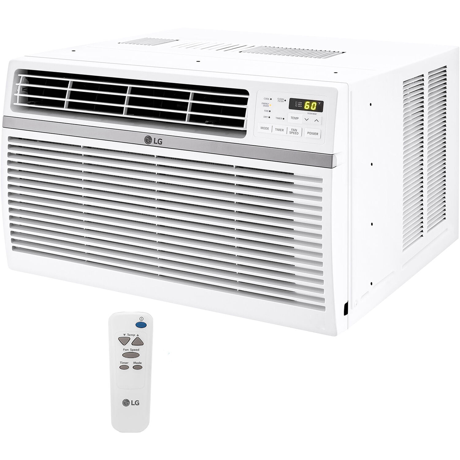 It’s important to get the right air conditioner for the job! The LG 8000 btu 115V LW8016ER is ideal for cooling medium rooms up to 340 sq. ft. This unit has 3 cooling and fan speeds and a 24 hour timer to create a cooling schedule. 4-way air deflection lets the flow of air be directed where it’s needed most whether cooling, dehumidifying or just circulating air. If there is a power outage, the auto restart feature will automatically turn your unit back on when power is restored. Other features include a remote control, easy window installation kit, removable, washable filter and a check filter alert.LG 8,000 BTU 340 sq ft Window Air Conditioner with Remote Control,White,LW8016ER