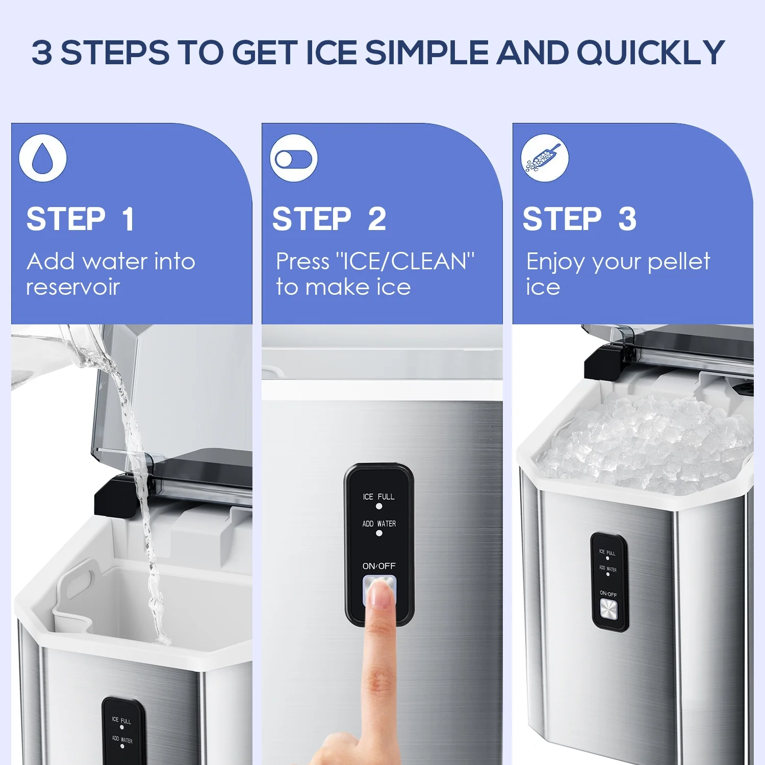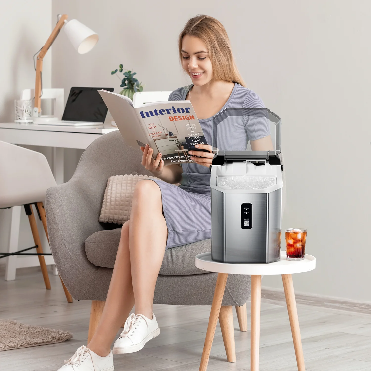 LHRIVER Nugget Ice Maker Countertop, Pebble Ice, 35Lbs/24H, Self-Cleaning, Silver
