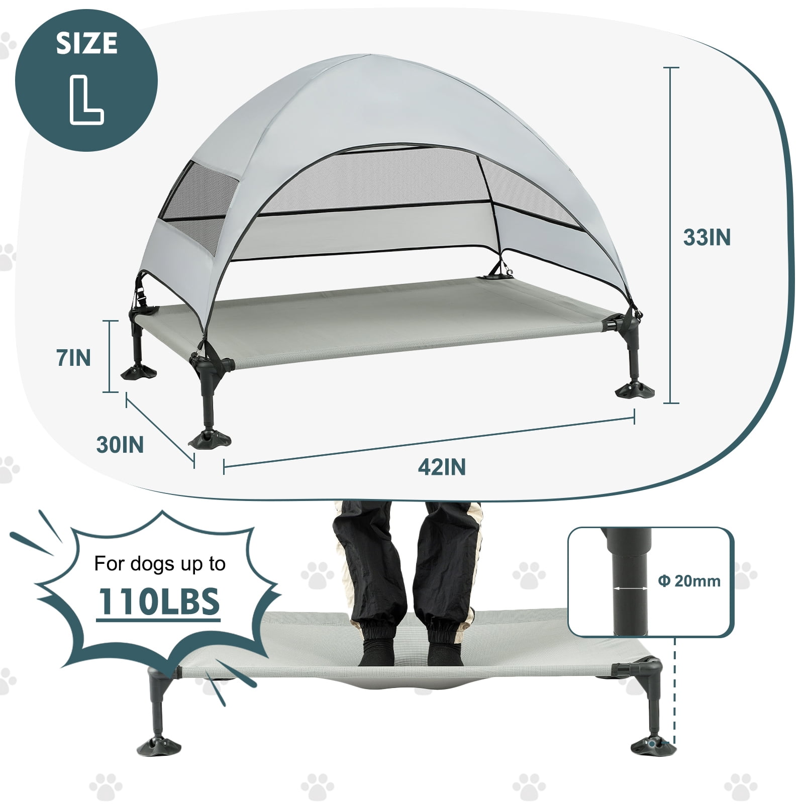 Libbipaw Elevated Dog Bed with Canopy, Portable Raised Outdoor Dog Bed with Stable Anti-Slip Feet, Large – Grey