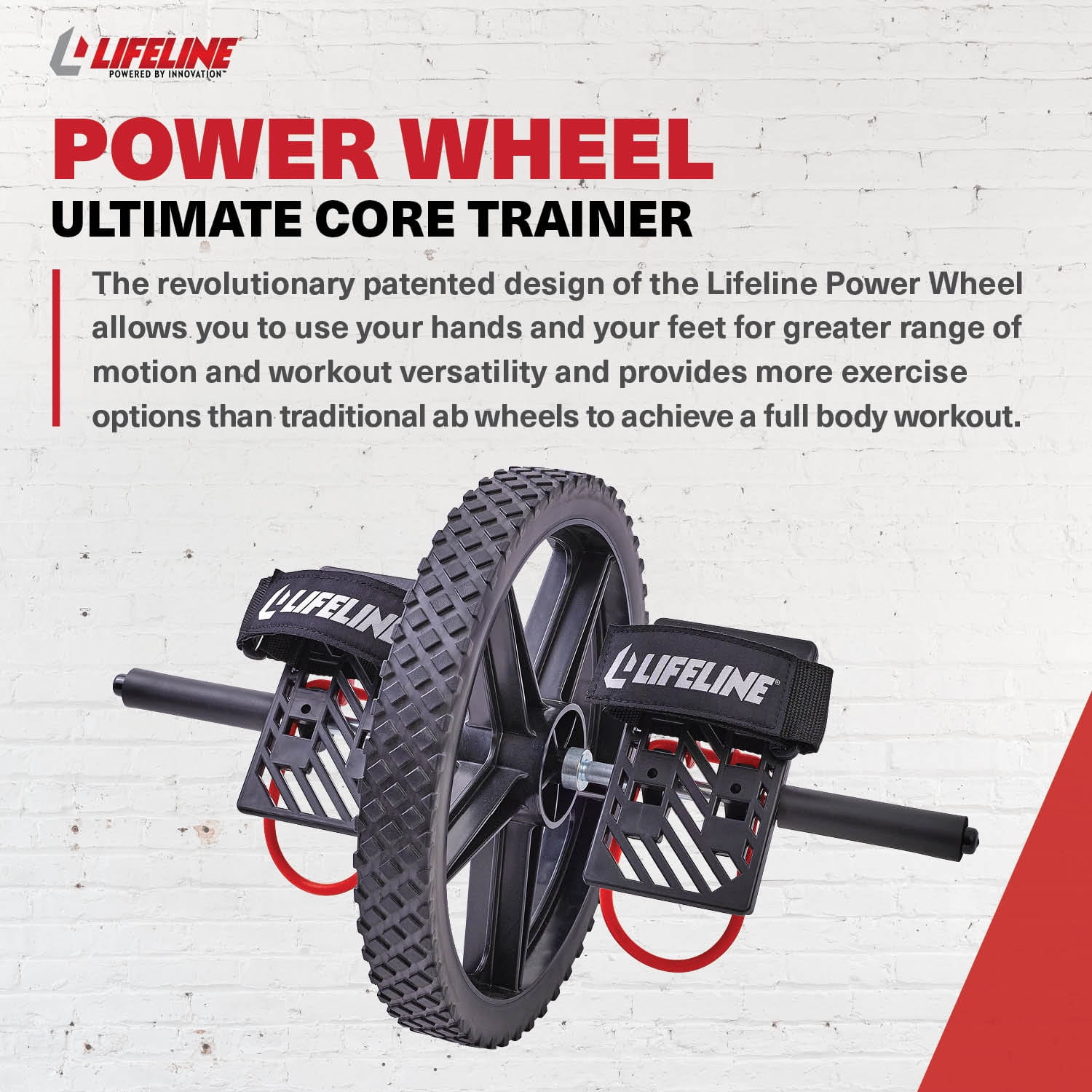 Lifeline Fitness Power Wheel for At-Home Full Body Functional Fitness Strength including Abs & Core, Lower Body and Upper Body with Foot Straps for More Workout Options