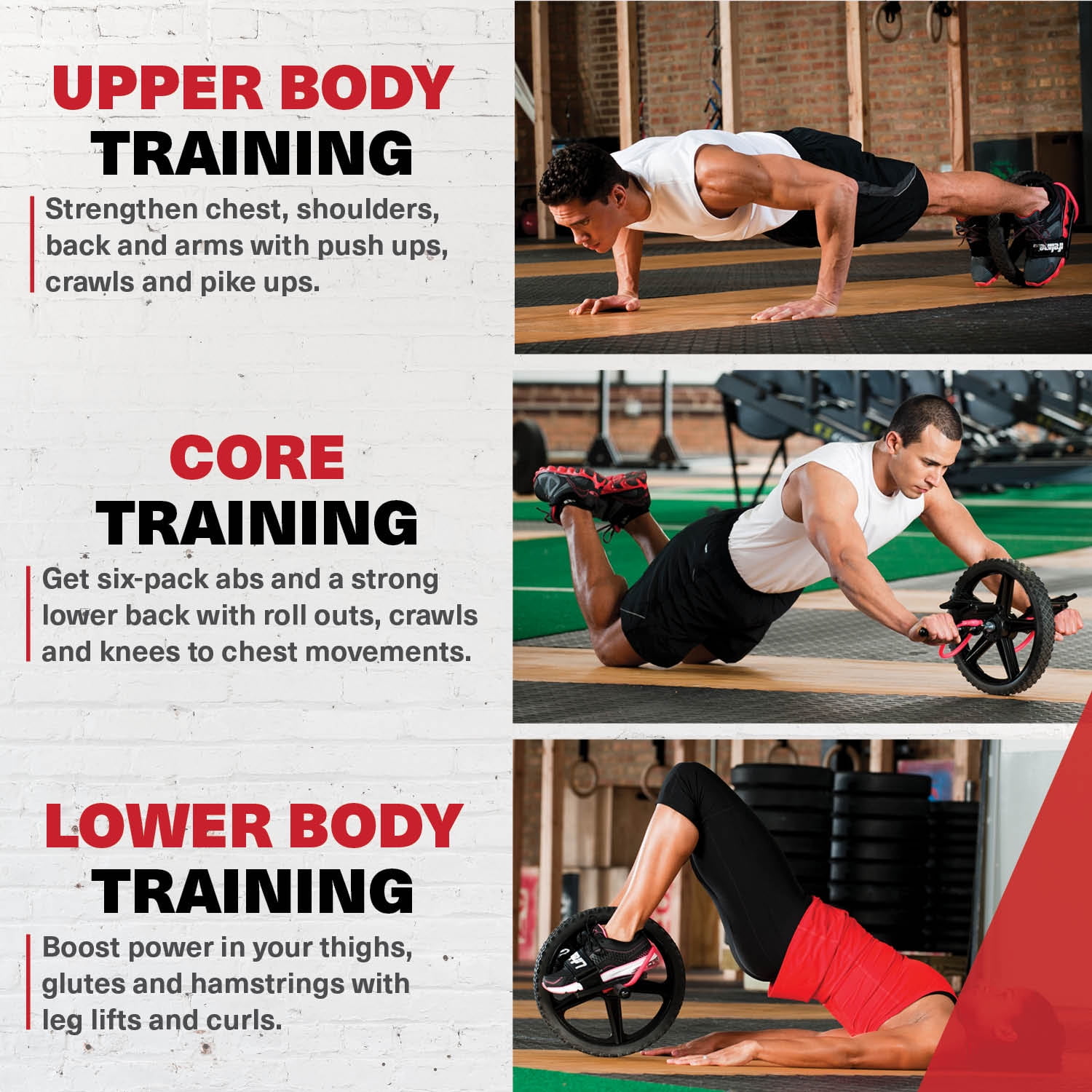 The Lifeline Fitness Power Wheel is designed to help increase balance, coordination, and stamina while strengthening core, upper and lower body muscle groups. Simultaneously work up to 20 muscles in your body, providing a full body workout at home, office, or while traveling. An excellent addition to your workout equipment collection! Place hands shoulder width apart or feet in stirrups to more exercise options. Numerous workout options possible. Combine with cardio, weights, and other exercises to maximize results. Increase balance, coordination, and stamina while strengthening core, upper and lower body. The Power Wheel is an ab machine that takes exercise equipment to the next level. Place hands shoulder width apart or feet in stirrups to more exercise options. Numerous workout options possible. Combine with cardio, weights, and other exercises to maximize results.