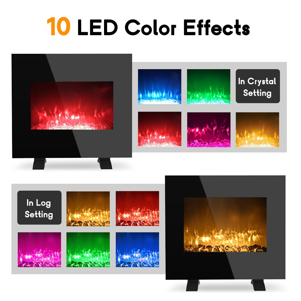 Combine with attractiveness and practicality, this 26 inch electric fireplace will enlighten your home. There are two install ways, wall mounted or freestanding. This electric fireplace comes with 2 heating settings–low setting 750 W and high setting 1500 W. More, this electric fireplace heater simulates real flame with 10 flamer colors. While with 5 flame brightness settings ranging from dim glow to full glow. The addition of remote control with the panel gives the comfort of operating and changing the settings of the heater from our couch or bed. More importantly, ETL certification and overheat protection ensure safety. This elegant black glass fireplace with timer adds a modern touch and an ideal touch to your home.
